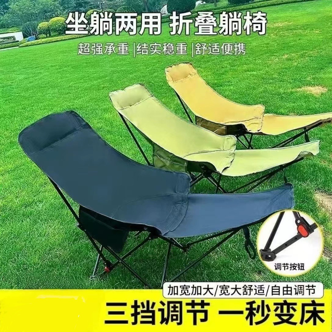 야외 용품 점심 휴식 의자 3단 조절 가능한 다리 받침대 탈착식 접이식 의자 하이백 캠핑 문 의자는 누워서 앉을 수 있습니다.