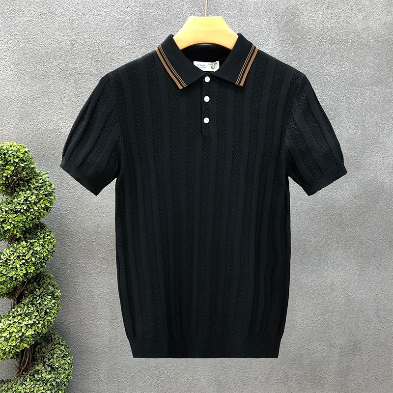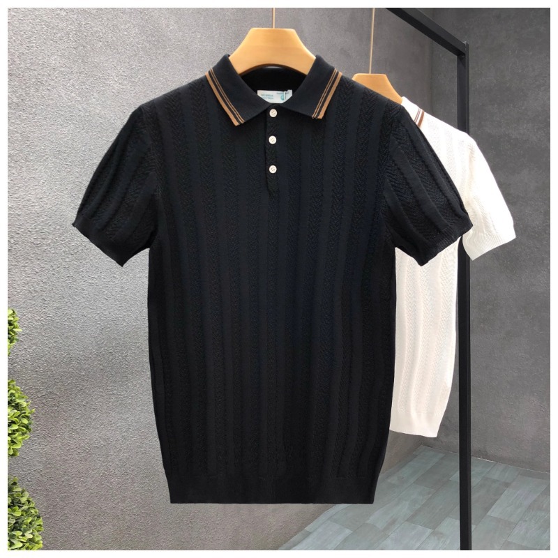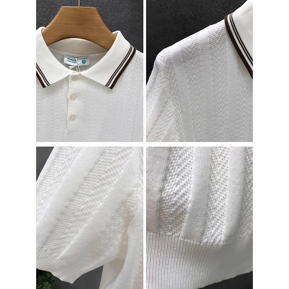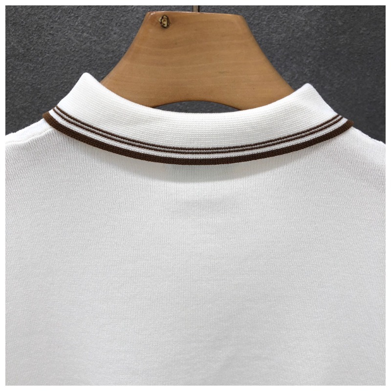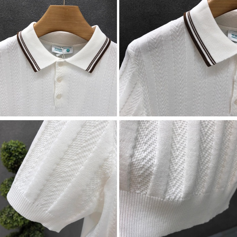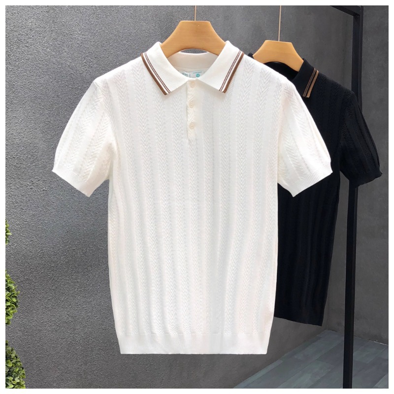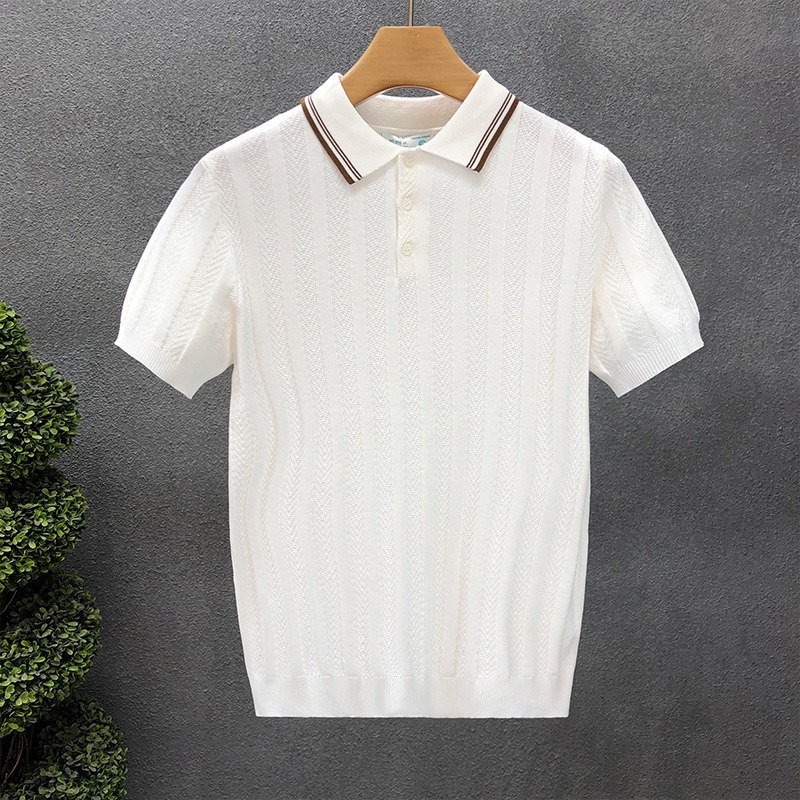 가벼운 럭셔리 화이트 라펠 반팔 스웨터 남성용 하이 엔드 트렌디 브랜드 아이스 실크 통기성 반팔 캐주얼 스웨터스토어 가기