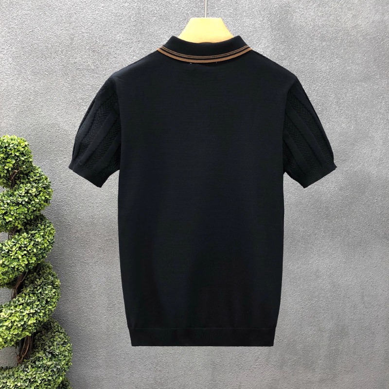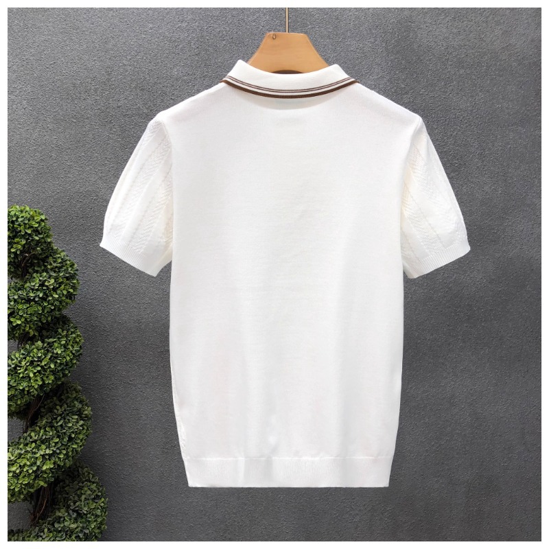 가벼운 럭셔리 화이트 라펠 반팔 스웨터 남성용 하이 엔드 트렌디 브랜드 아이스 실크 통기성 반팔 캐주얼 스웨터