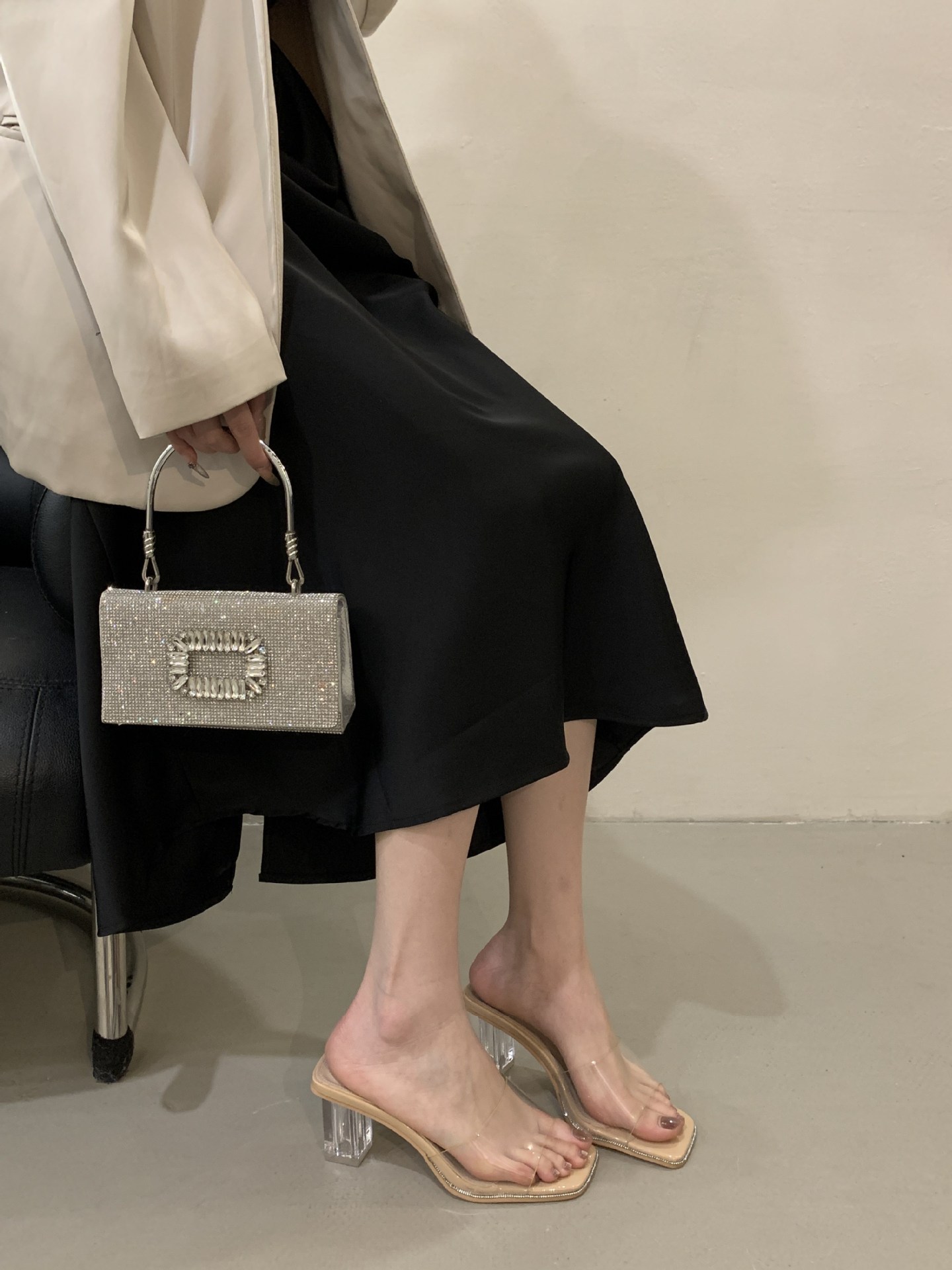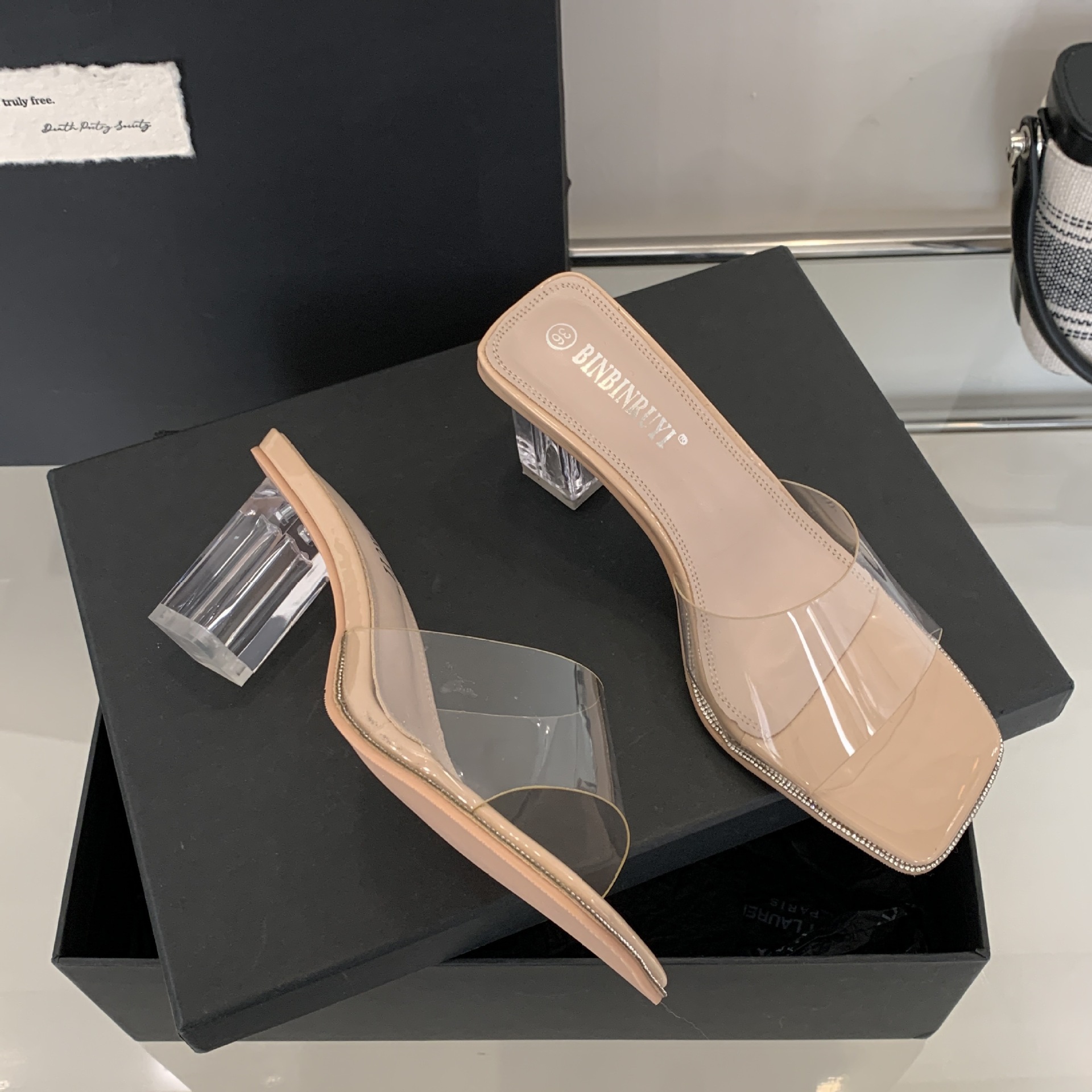 2025 새로운 샌들 여성 봄, 여름 투명한 두꺼운 굽 크리스탈 하이힐 요정 스타일 원 스트랩 샌들