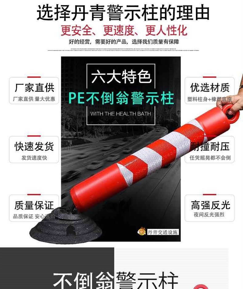 고무 탄성 기둥 텀블러 경고 기둥 고무 및 플라스틱 베이스 도로 반사 플라스틱 절연 기둥 도로 기둥 충돌 방지 기둥스토어 가기
