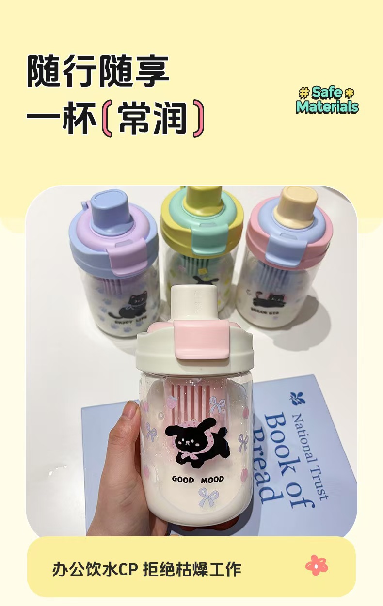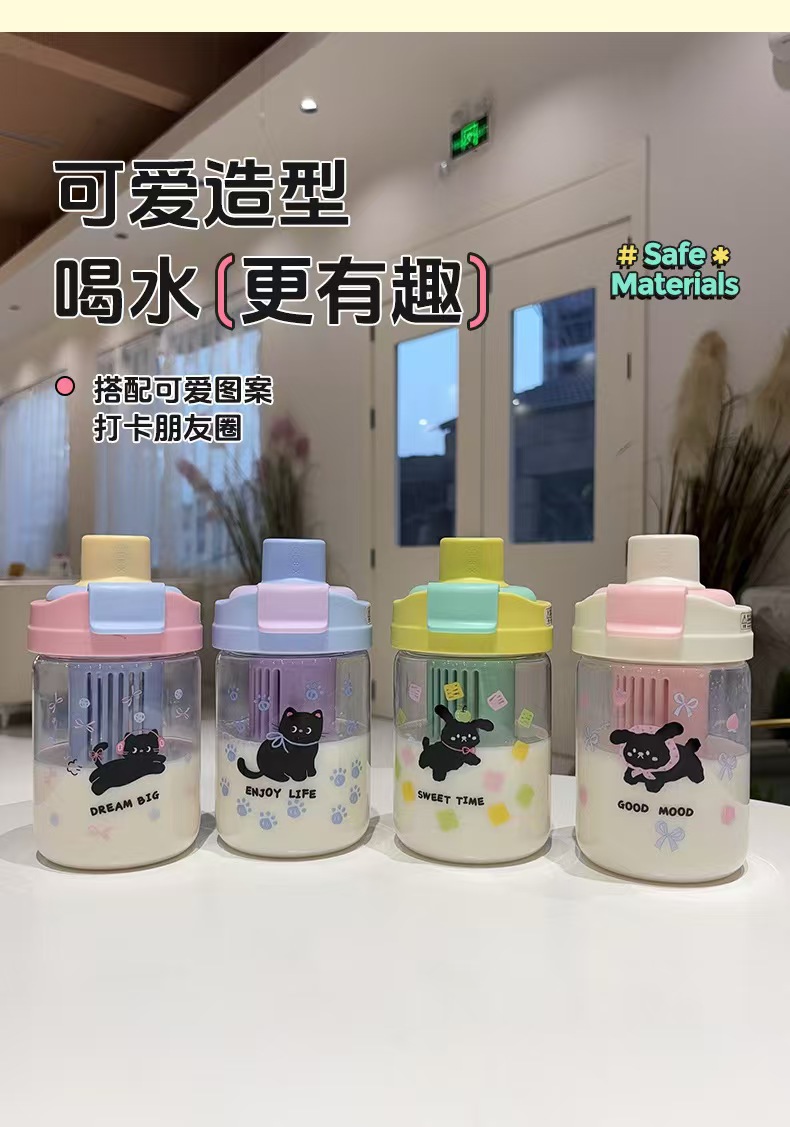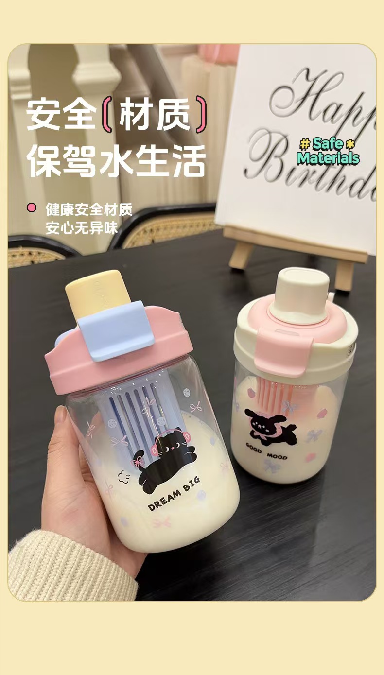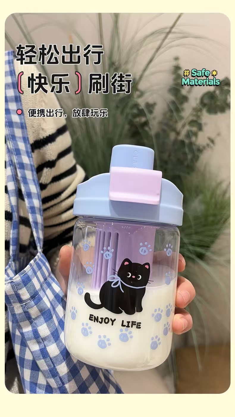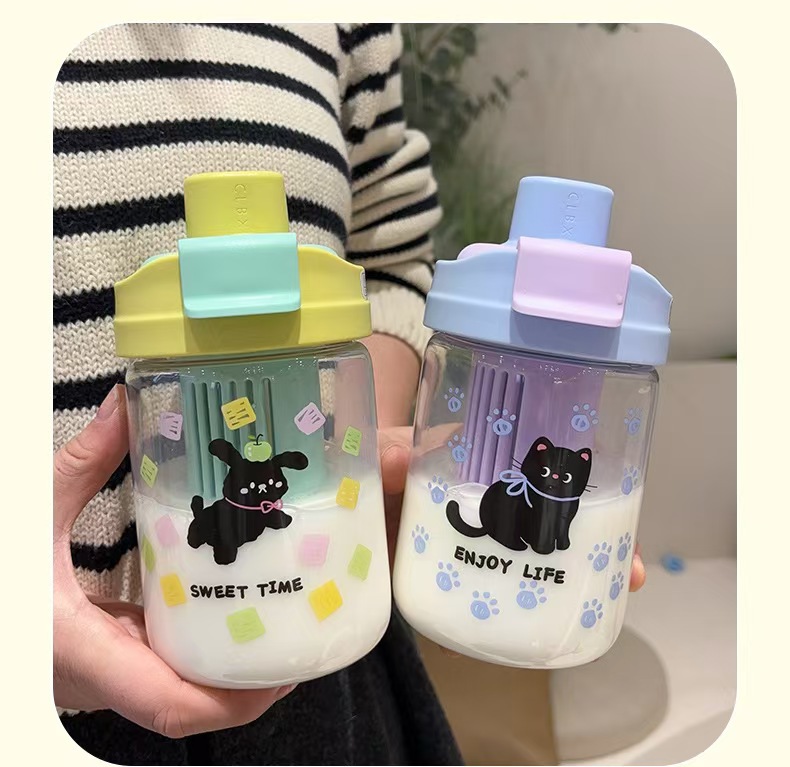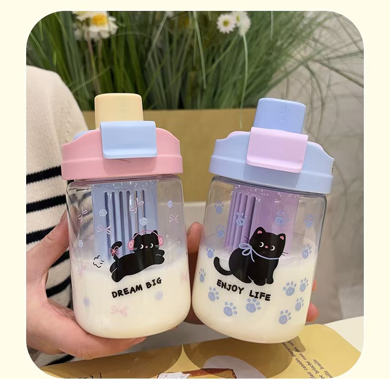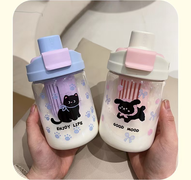 귀여운 고양이 더블 마시는 짚 플라스틱 컵 만화 귀여운 컵 높은 색상 값 높은 온도 저항 특수 컵 차 창고