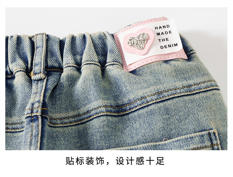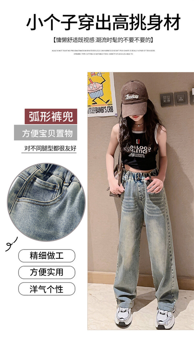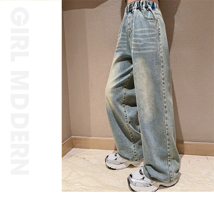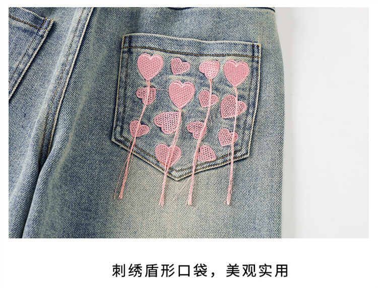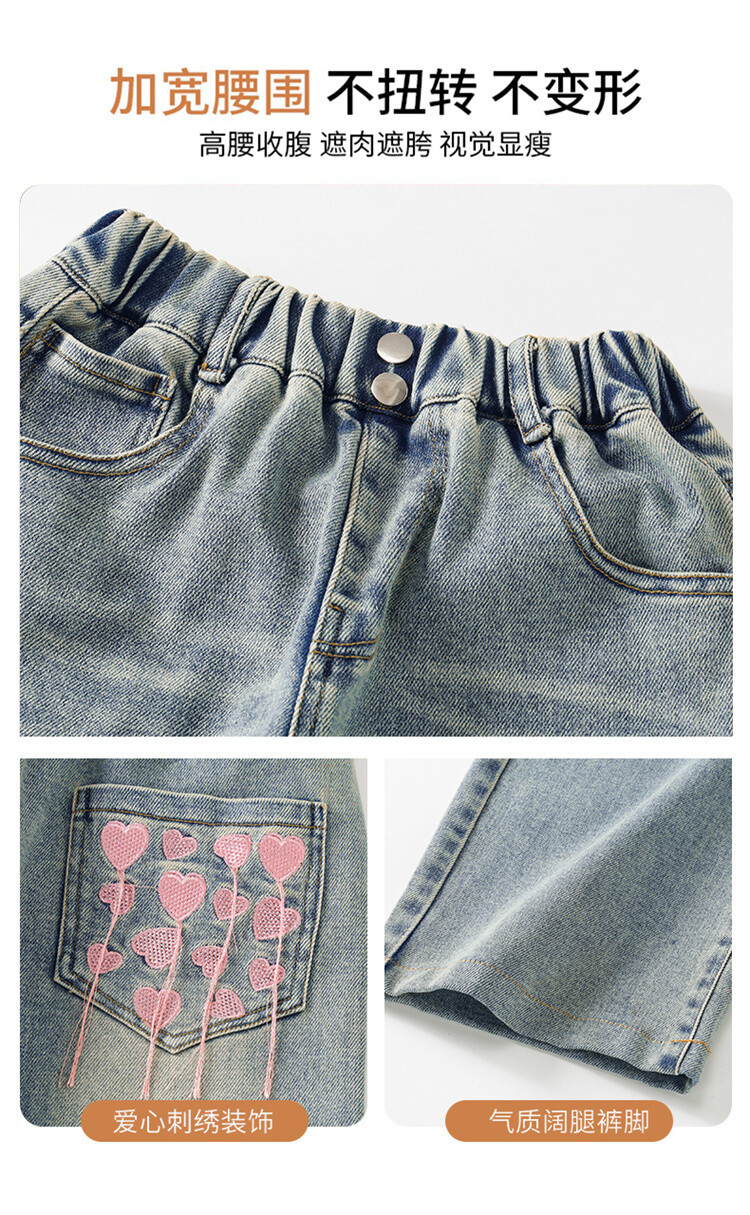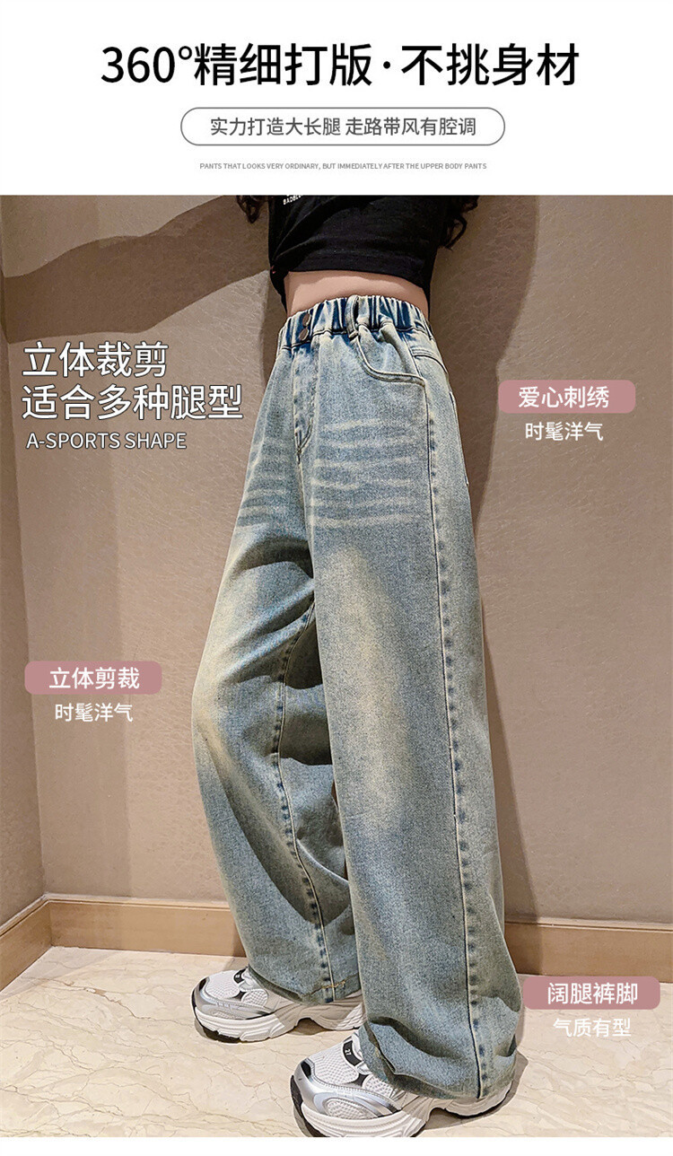 소녀 2025 봄 가을 중 큰 어린이 새로운 어린이 한국 자수 청바지 올매치 인기 트렌디 쿨 스트레이트 와이드 레그