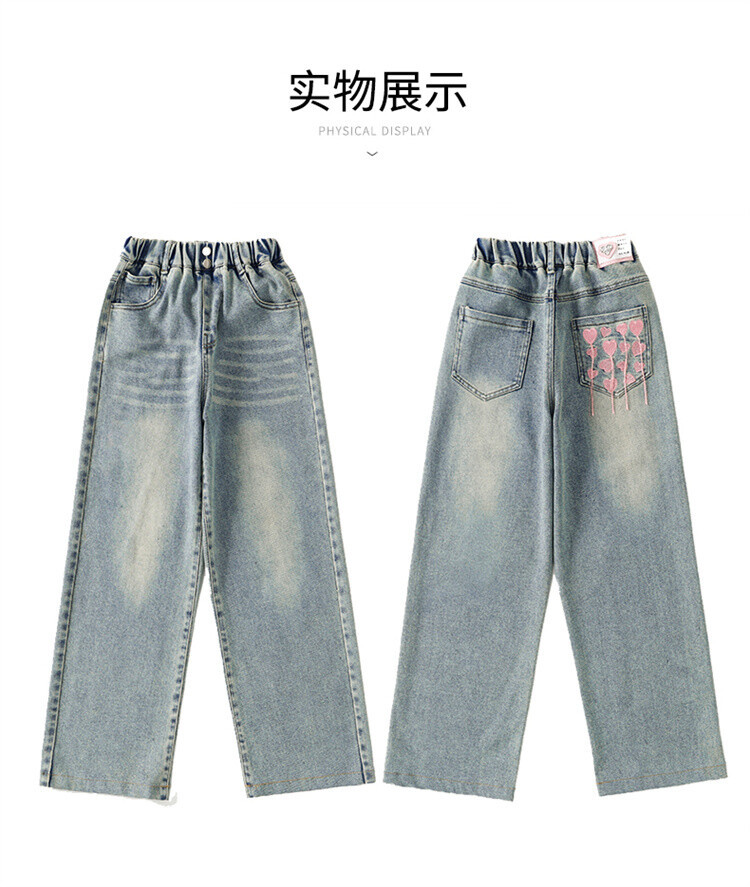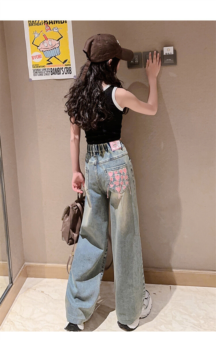 소녀 2025 봄 가을 중 큰 어린이 새로운 어린이 한국 자수 청바지 올매치 인기 트렌디 쿨 스트레이트 와이드 레그스토어 가기