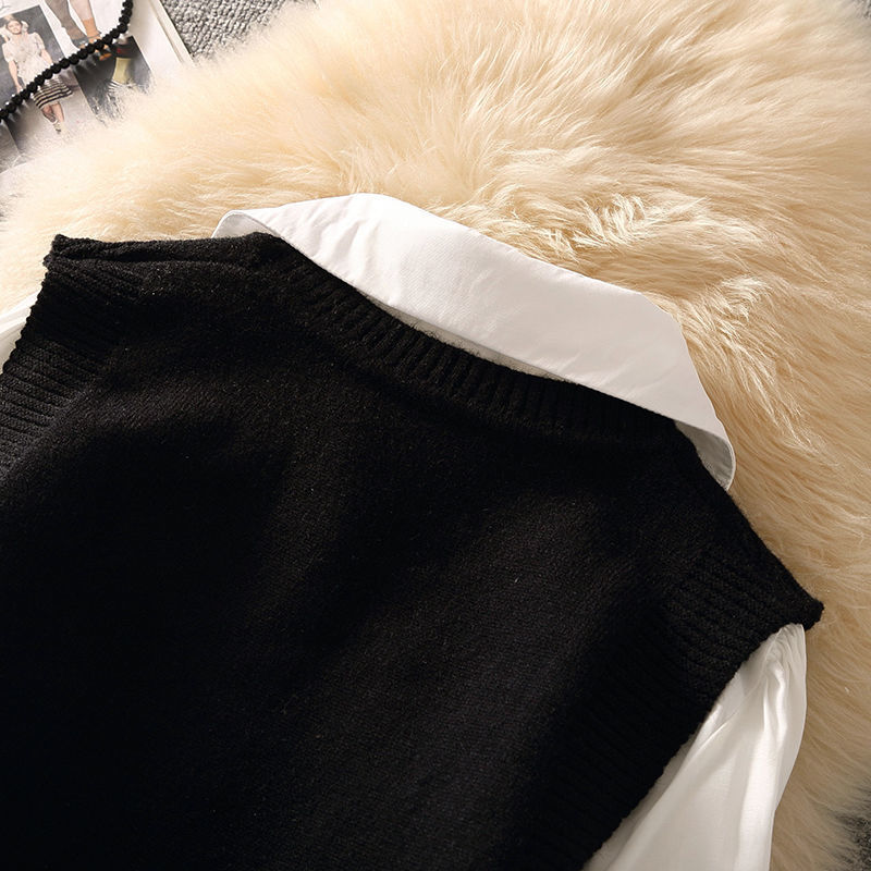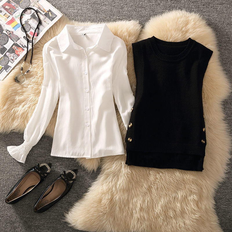 2025 이른 봄 새로운 한국 스타일 달콤하고 다재다능한 흰색 셔츠 + 여성을위한 세련된 니트 조끼 투피스 슈트스토어 가기