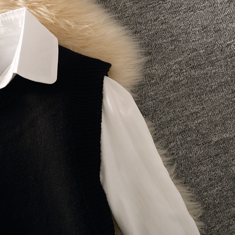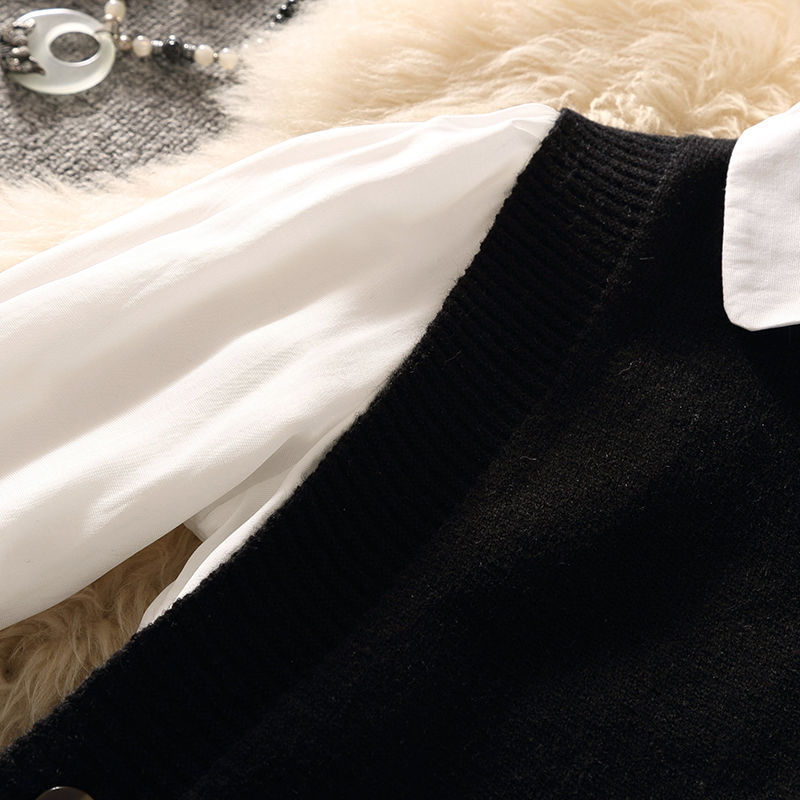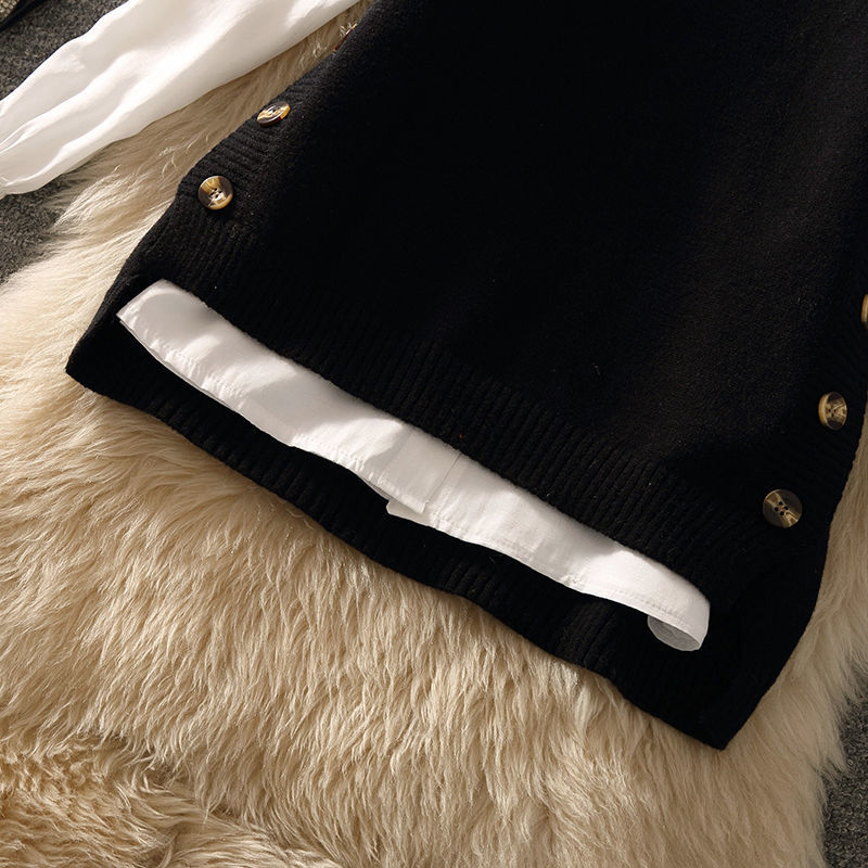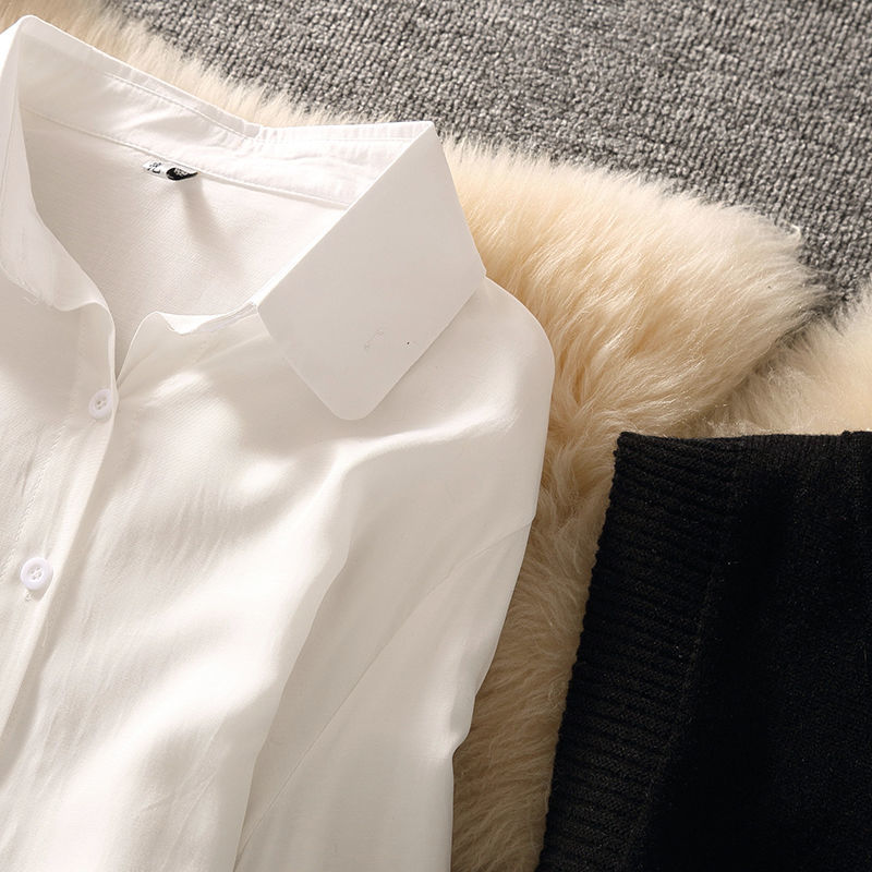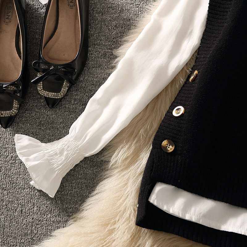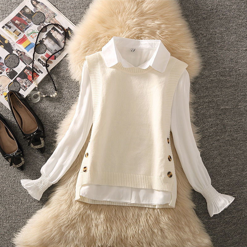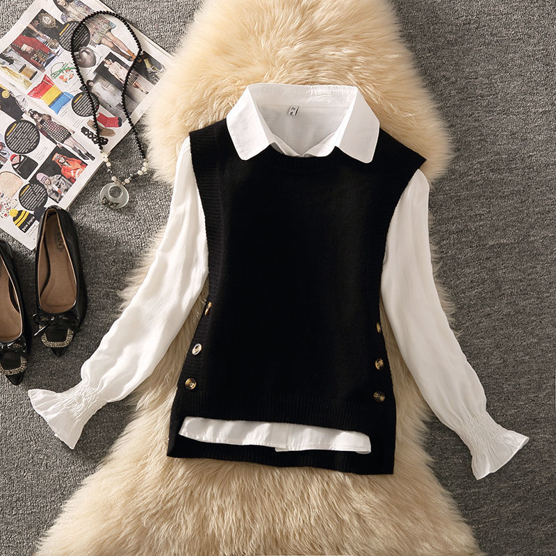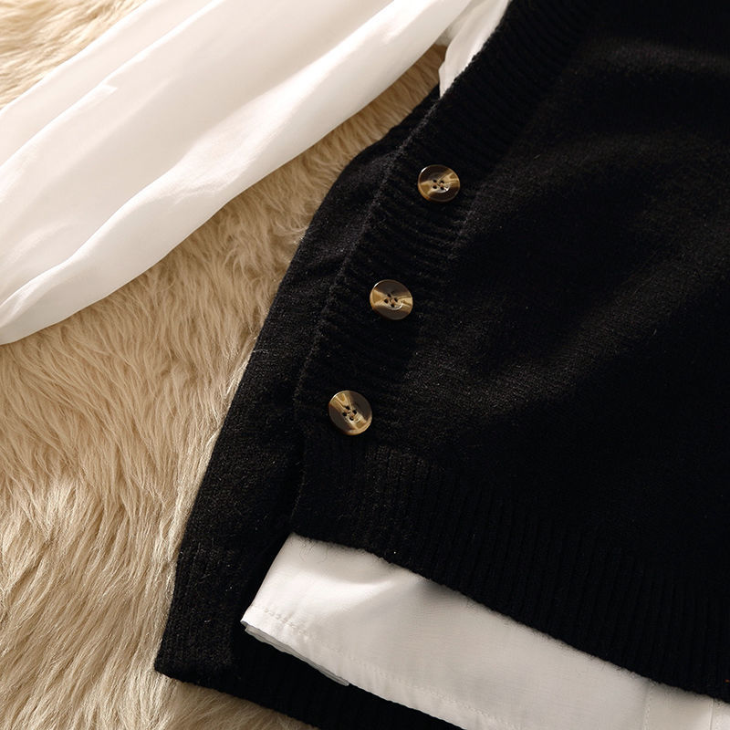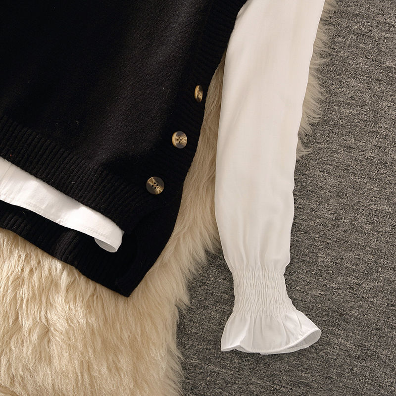 2025 이른 봄 새로운 한국 스타일 달콤하고 다재다능한 흰색 셔츠 + 여성을위한 세련된 니트 조끼 투피스 슈트