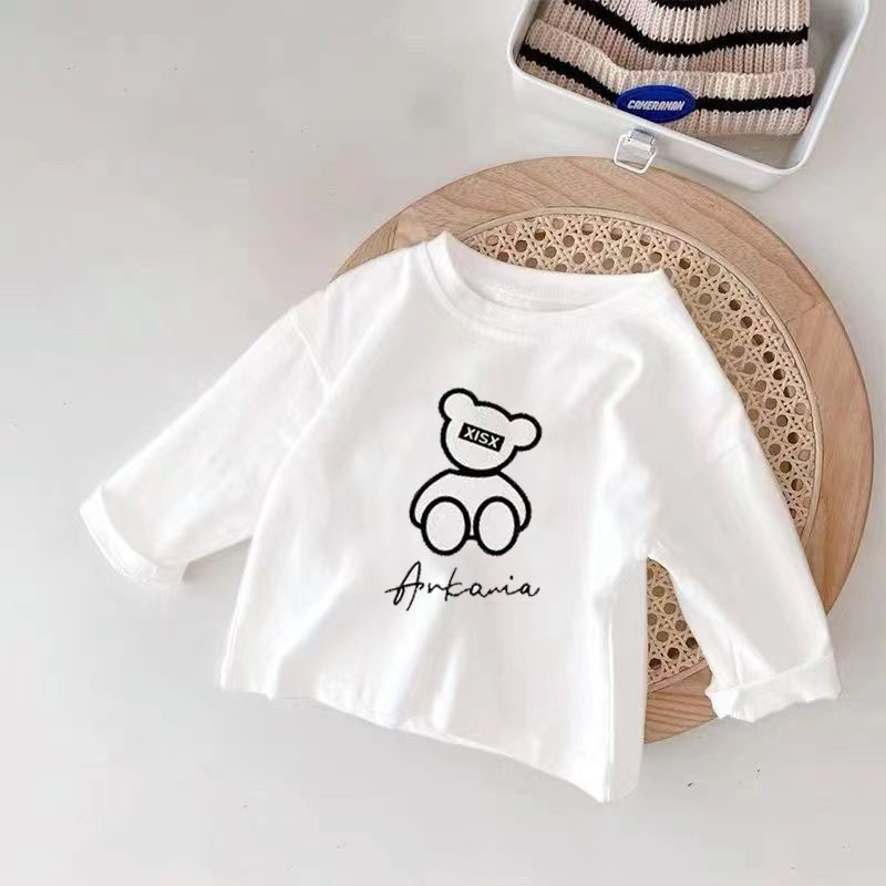 100% 면 아동용 긴팔 셔츠 봄, 가을 신작 프린트 캐주얼 티셔츠 남성 및 여성 베이비 탑 트렌디스토어 가기