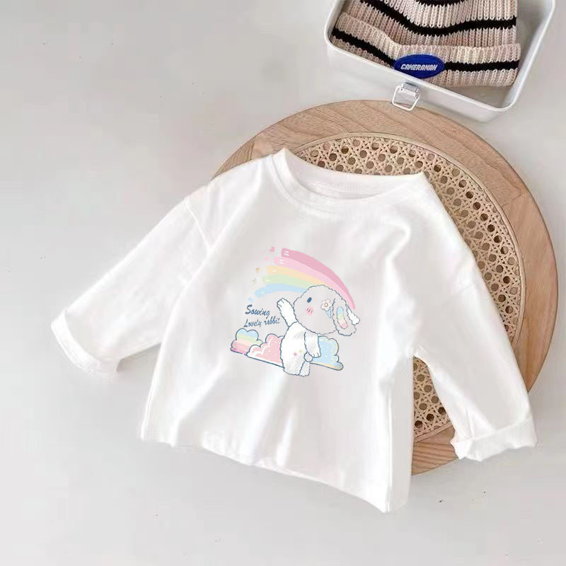 100% 면 아동용 긴팔 셔츠 봄, 가을 신작 프린트 캐주얼 티셔츠 남성 및 여성 베이비 탑 트렌디