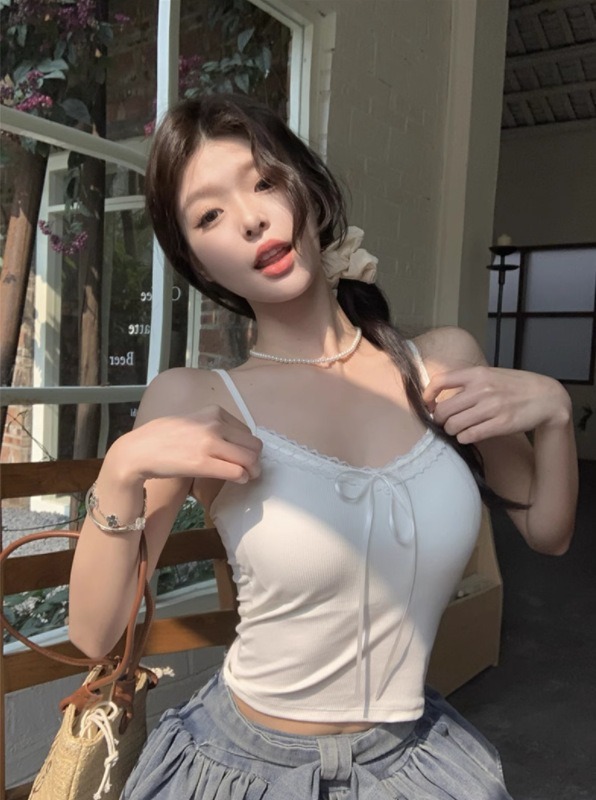 순수한 욕망 레이스 조끼 달콤한베이스 스파이스 소녀 활 가슴 패드 슬림 슬링 디자인 민소매 탑