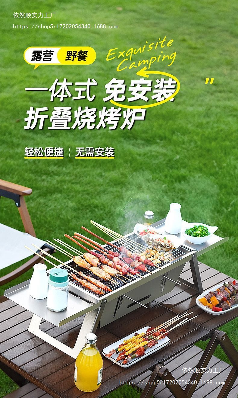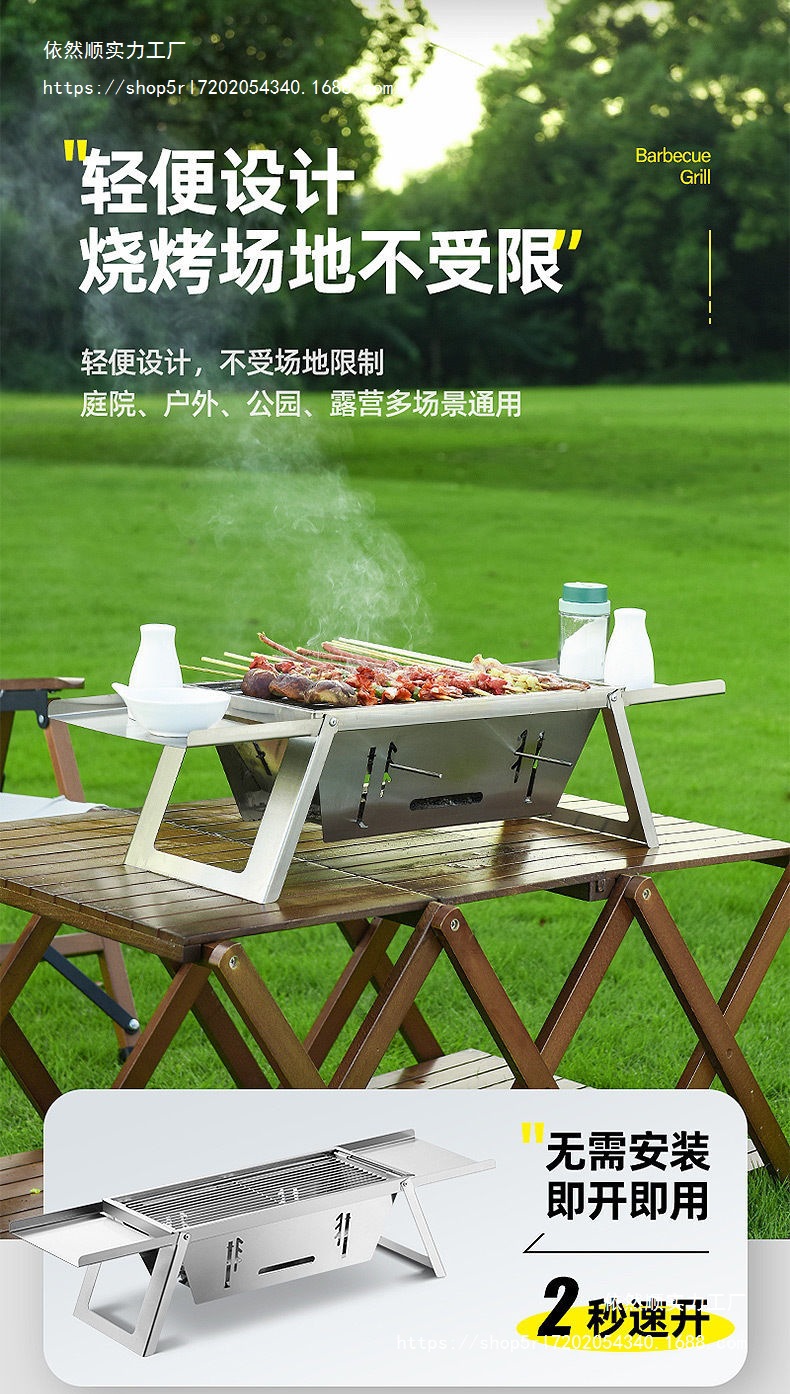 스테인레스 스틸 새로운 바베큐 스토브 가정용 실내 야외 캠핑 숯 휴대용 접이식 통합 바베큐 선반스토어 가기