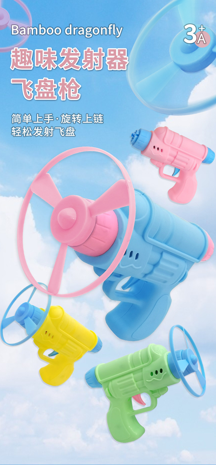 빛나는 대나무 잠자리 권총 어린이 자이로 총 비행 접시 자이로 회전 프리스 비 총 비행 휠 장난감 도매스토어 가기