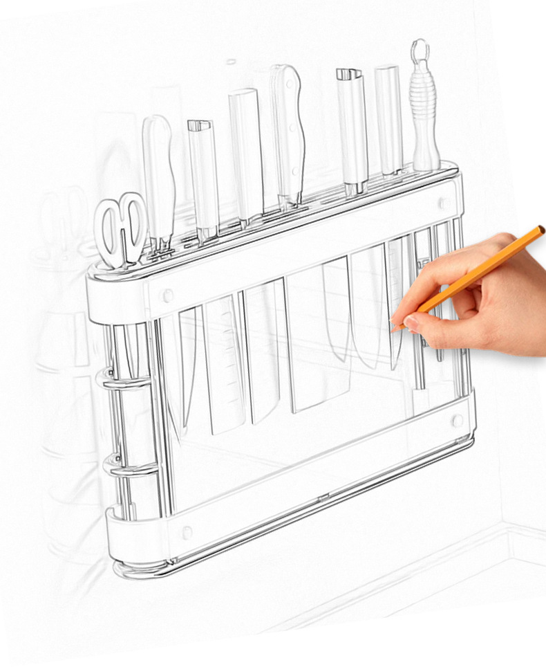 • 오리지널 컬러 스테인리스 스틸* 벽걸이형 칼 홀더