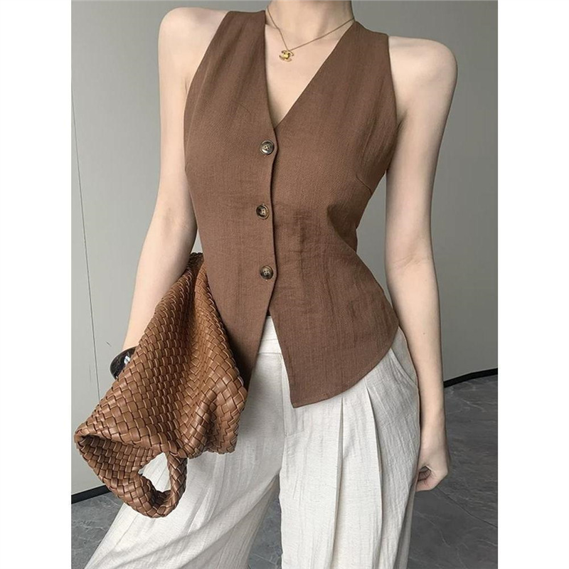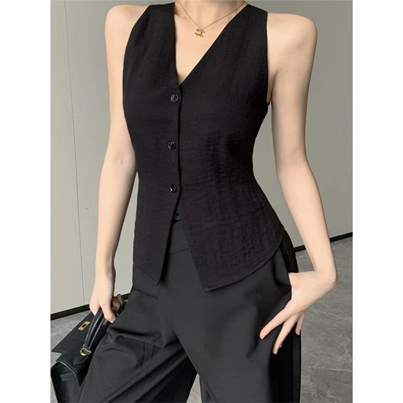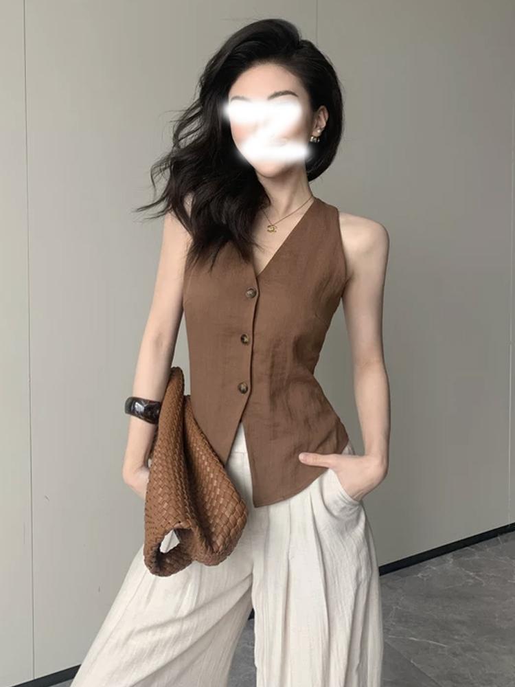 프랑스 복고풍 우아한 조끼 여성 여름 아우터웨어 2025 새로운 슬림 핏 유행 디자인 민소매 탑스토어 가기