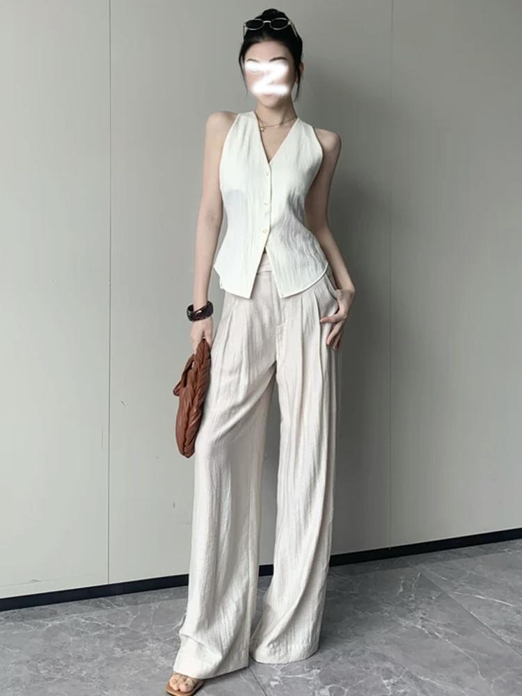 프랑스 복고풍 우아한 조끼 여성 여름 아우터웨어 2025 새로운 슬림 핏 유행 디자인 민소매 탑