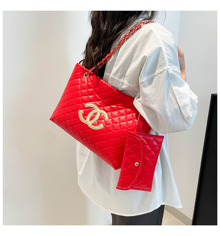 국경 가방 여성의 2025 새로운 패션 편지 토트 백 대용량 체인 숄더 백 트렌디 한 Rhomboid 대형 가방
