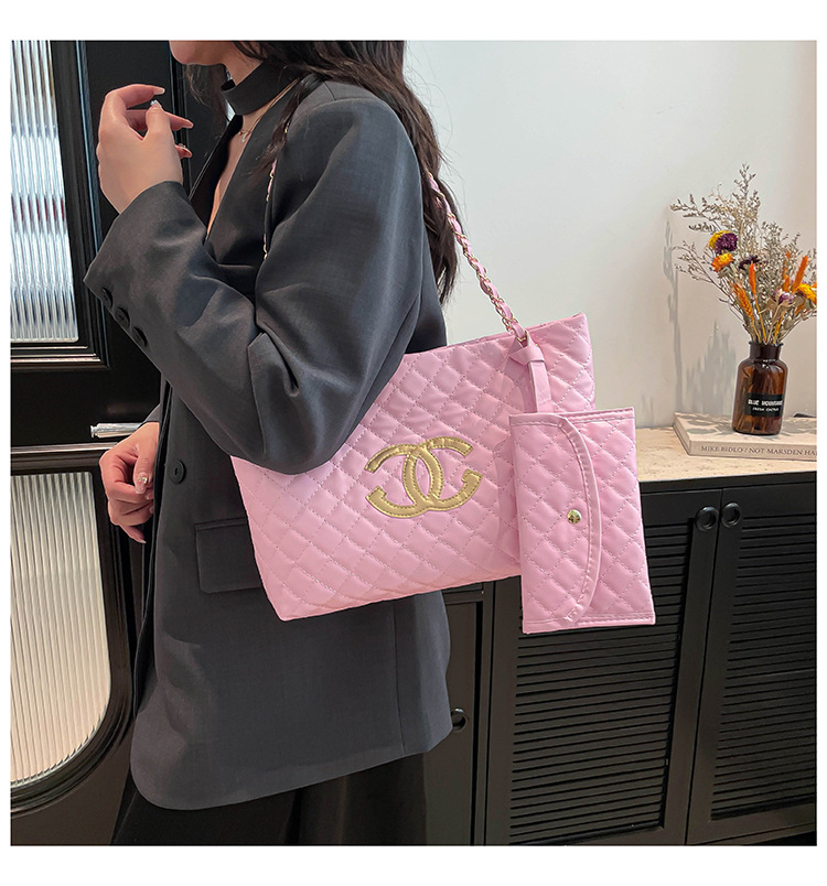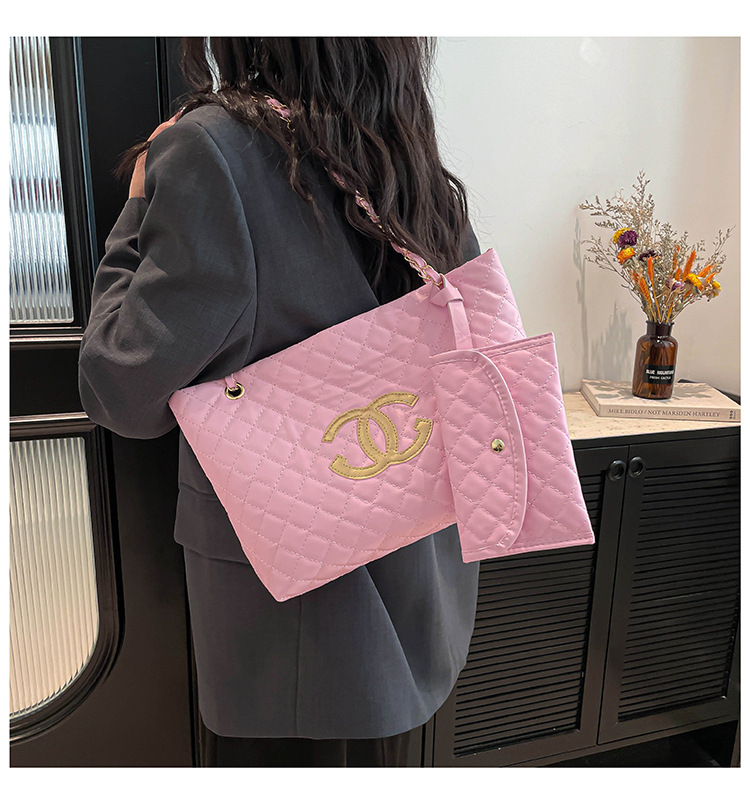 국경 가방 여성의 2025 새로운 패션 편지 토트 백 대용량 체인 숄더 백 트렌디 한 Rhomboid 대형 가방스토어 가기
