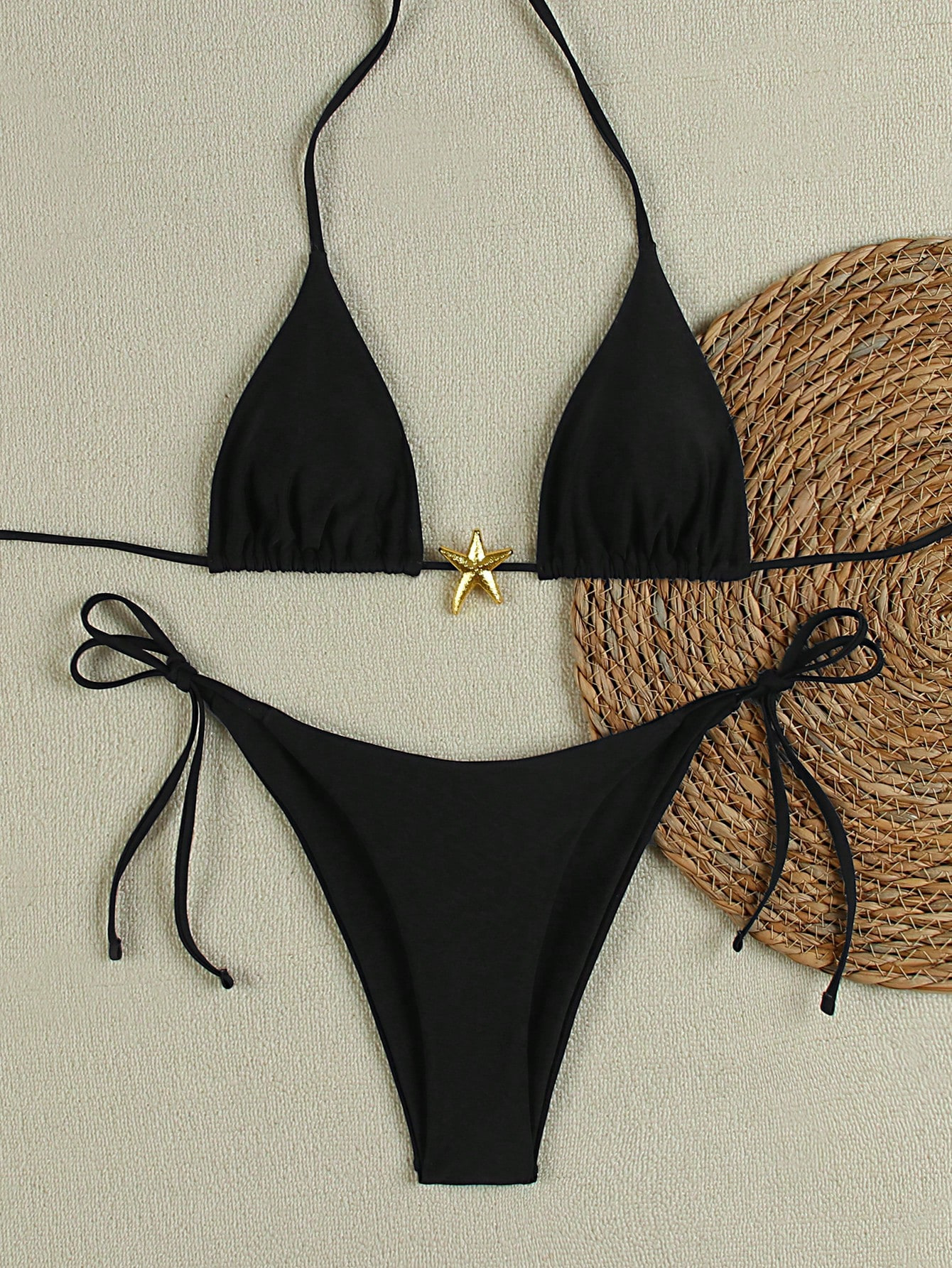 2025 국경 간 인기 유럽과 미국 대외 무역 섹시한 패션 비키니 수영복 솔리드 컬러 메탈 삼각형 스플릿 여성 수영복