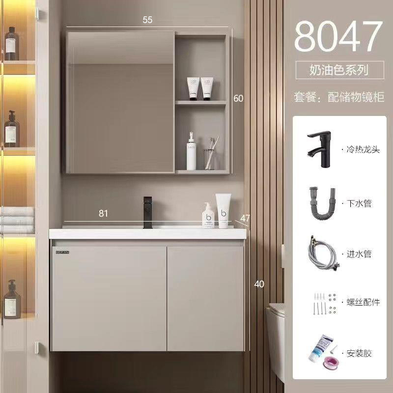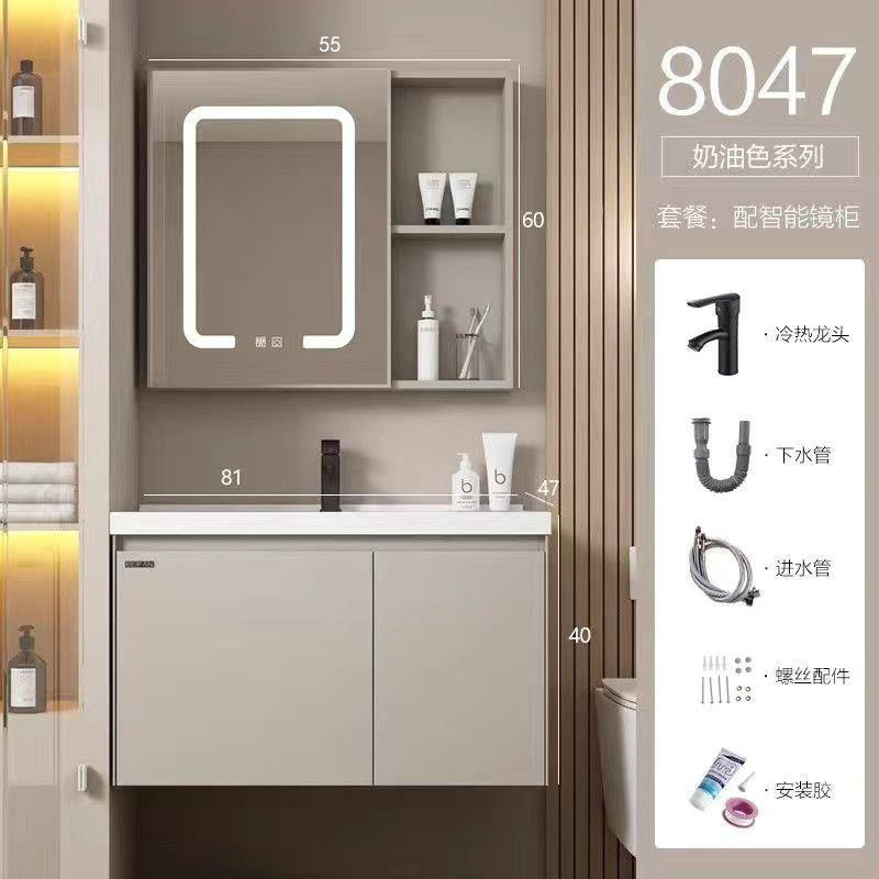 • 행잉완성세트 + 스마트거울장.-수납장 세면대-81x48 [크림색상].