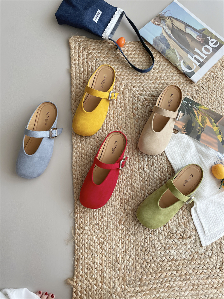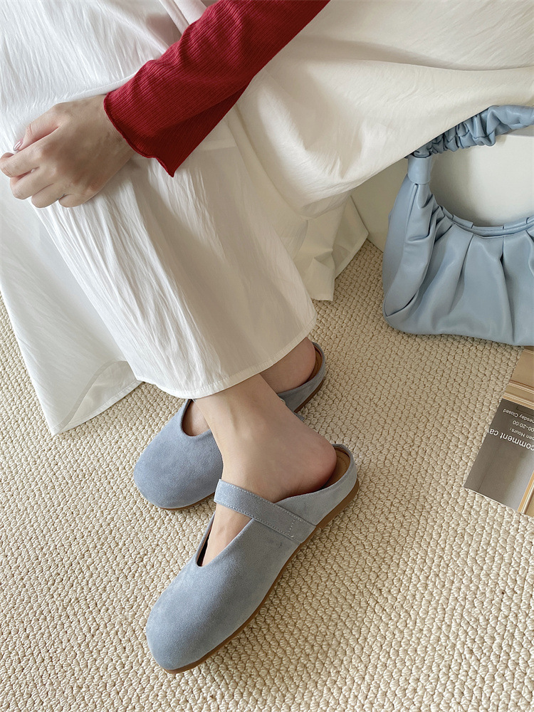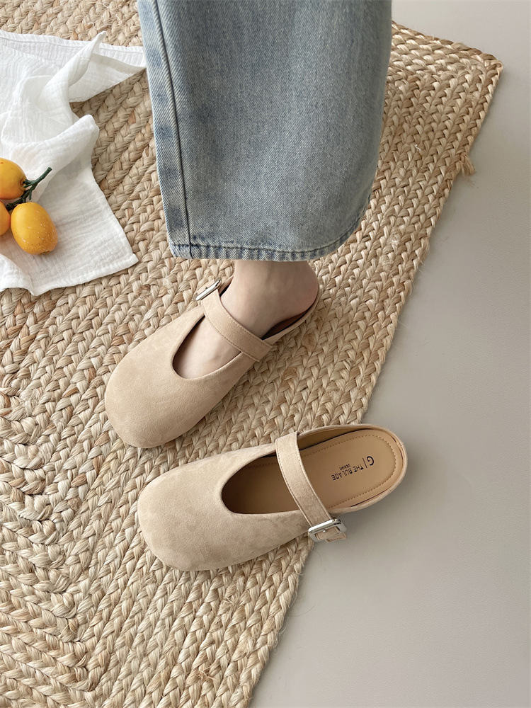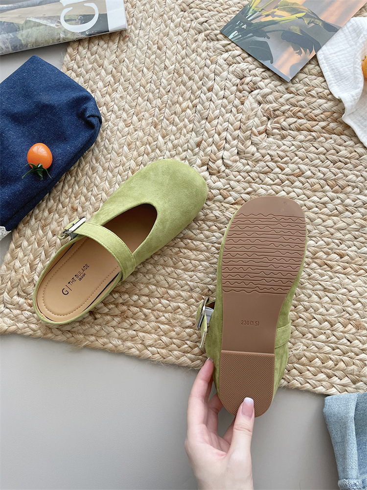 바오터우 하프 슬리퍼 여성 신발 2025 새로운 플랫 프렌치 스퀘어 토 게으른 뮬러 여성 신발스토어 가기