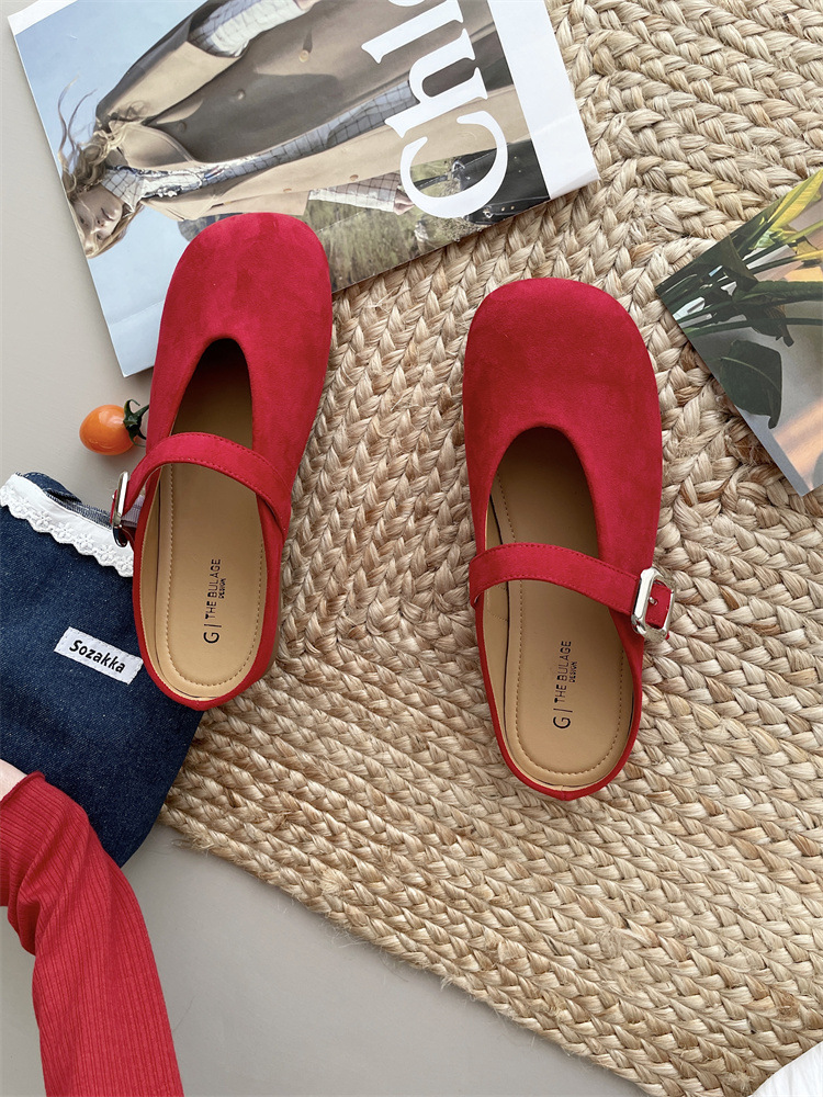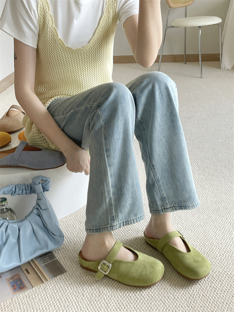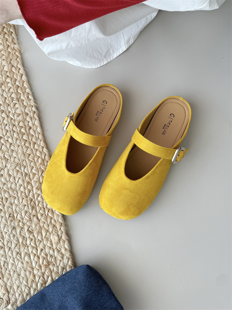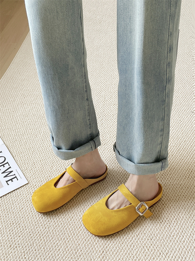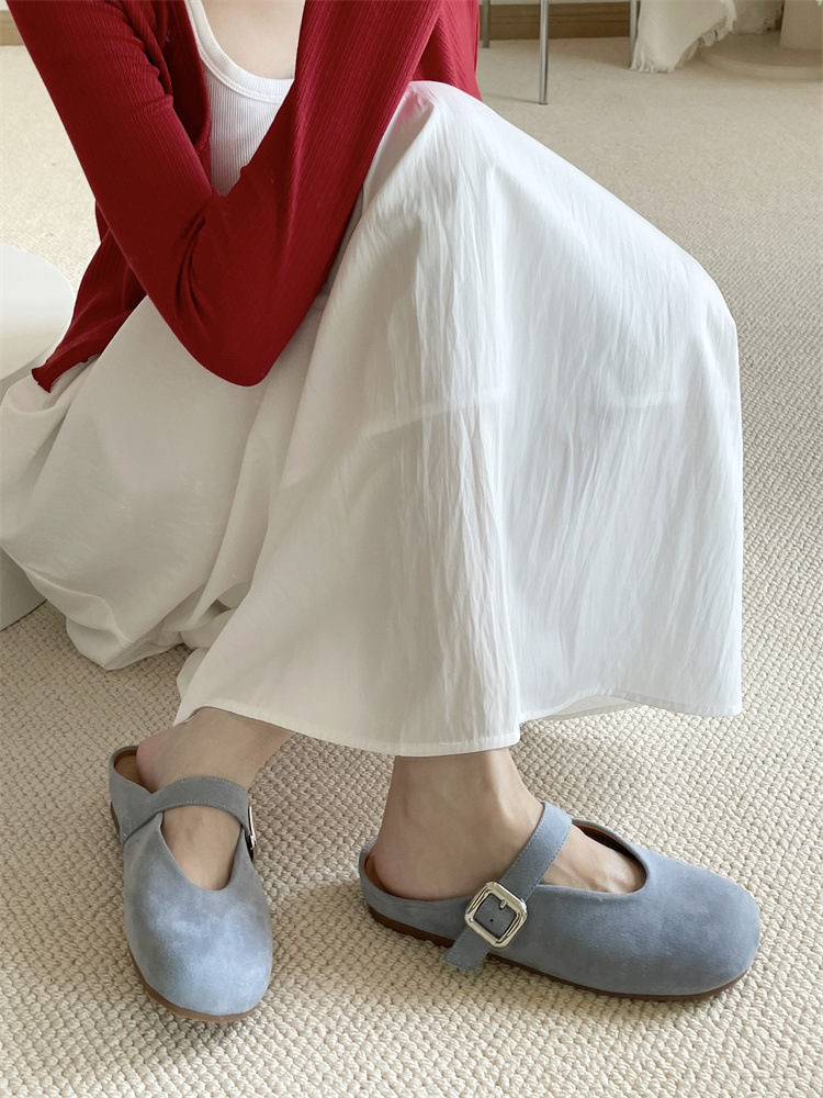 바오터우 하프 슬리퍼 여성 신발 2025 새로운 플랫 프렌치 스퀘어 토 게으른 뮬러 여성 신발스토어 가기