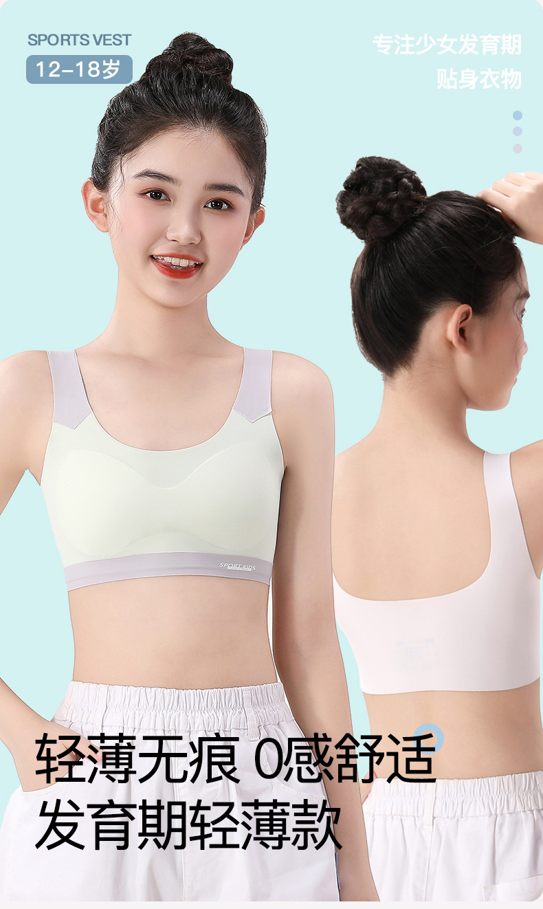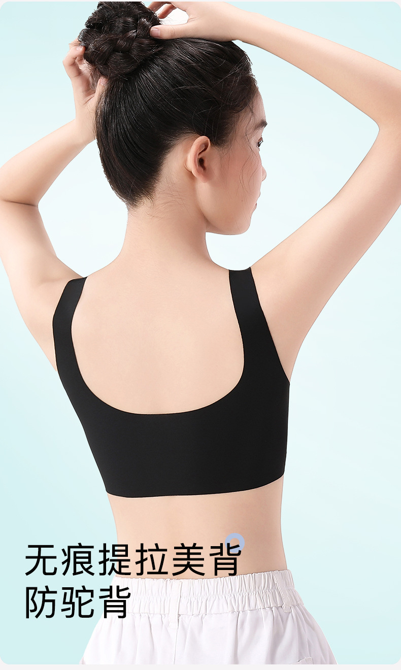 여자 속옷 사춘기 중학생 고등학교 고등학교 원활한 아이스 실크 브래지어 여자 스포츠 충격 방지 작은 조끼스토어 가기