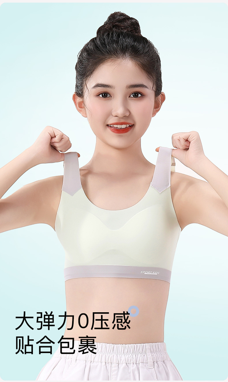 여자 속옷 사춘기 중학생 고등학교 고등학교 원활한 아이스 실크 브래지어 여자 스포츠 충격 방지 작은 조끼