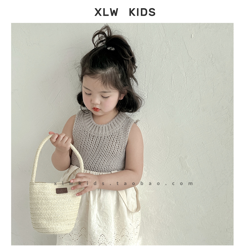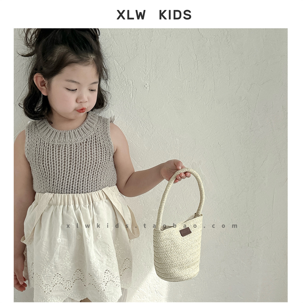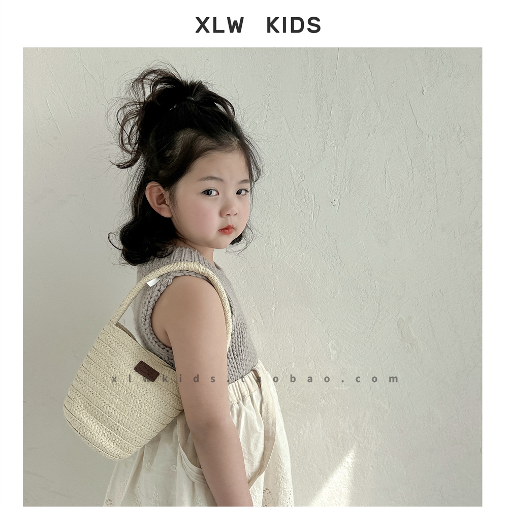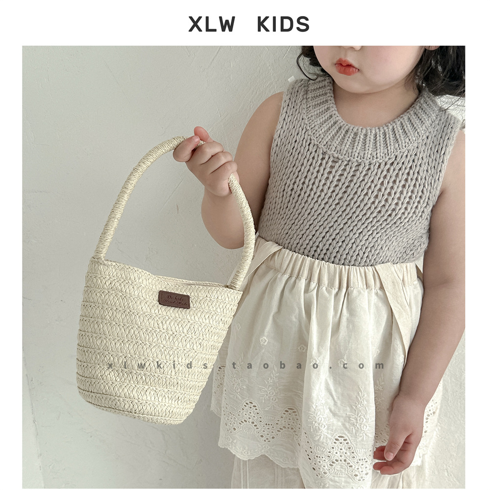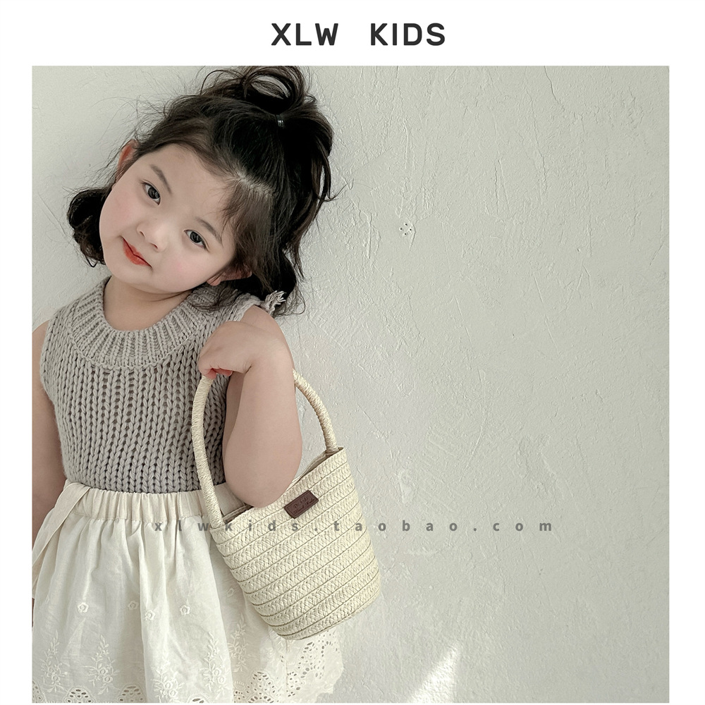 휴가 스타일 ~ 에 한국 어린이 핸드백 소녀 손으로 짠 가방 여행 해변 사진 어깨 메신저 가방