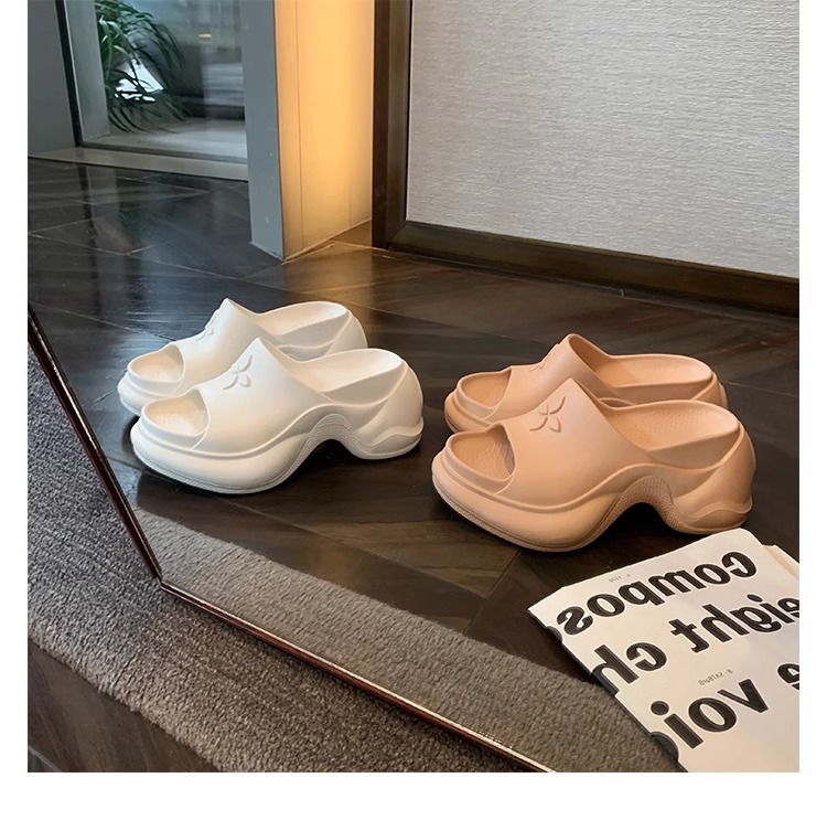 2025년 신상 포도엄마와 같은 스타일의 패셔너블하고 슬림해지는 두꺼운 밑창 크로스 플라워 여성용 다용도 비치 슬리퍼