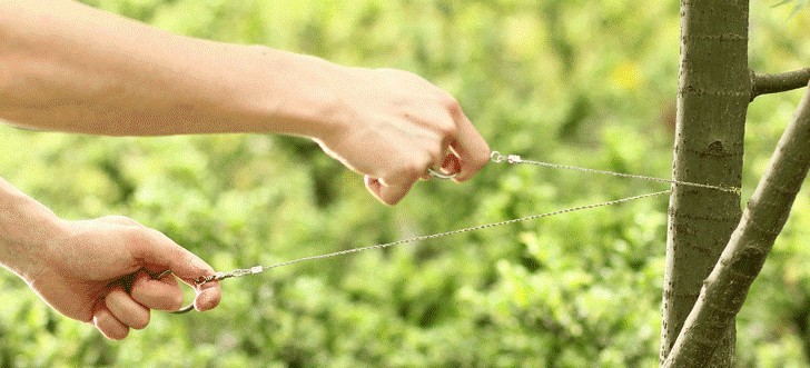 线锯是求生背包中的一件重要物品,线锯的锯齿很细密,使用时须小心线锯生锈会使其锯齿变钝,每次用完后应擦干净,涂润食物油。它可以从任意方向切断木头、塑料。