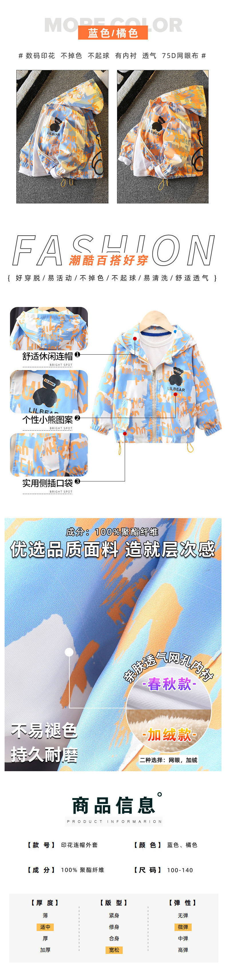 소년 후드 자켓 2023 한국 스타일 소녀 유행 봄, 가을 어린이 곰 프린트 자켓 탑스토어 가기