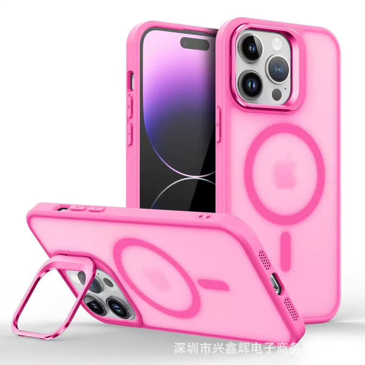 애플 17Pro 피부 느낌의 자석 휴대폰 케이스 iPhone 16Promax 렌즈 스탠드 13 보호 케이스 14에 적합