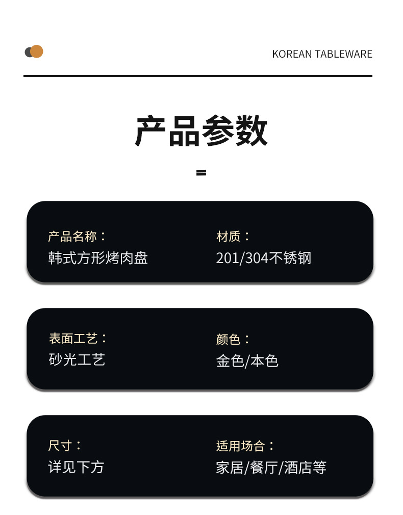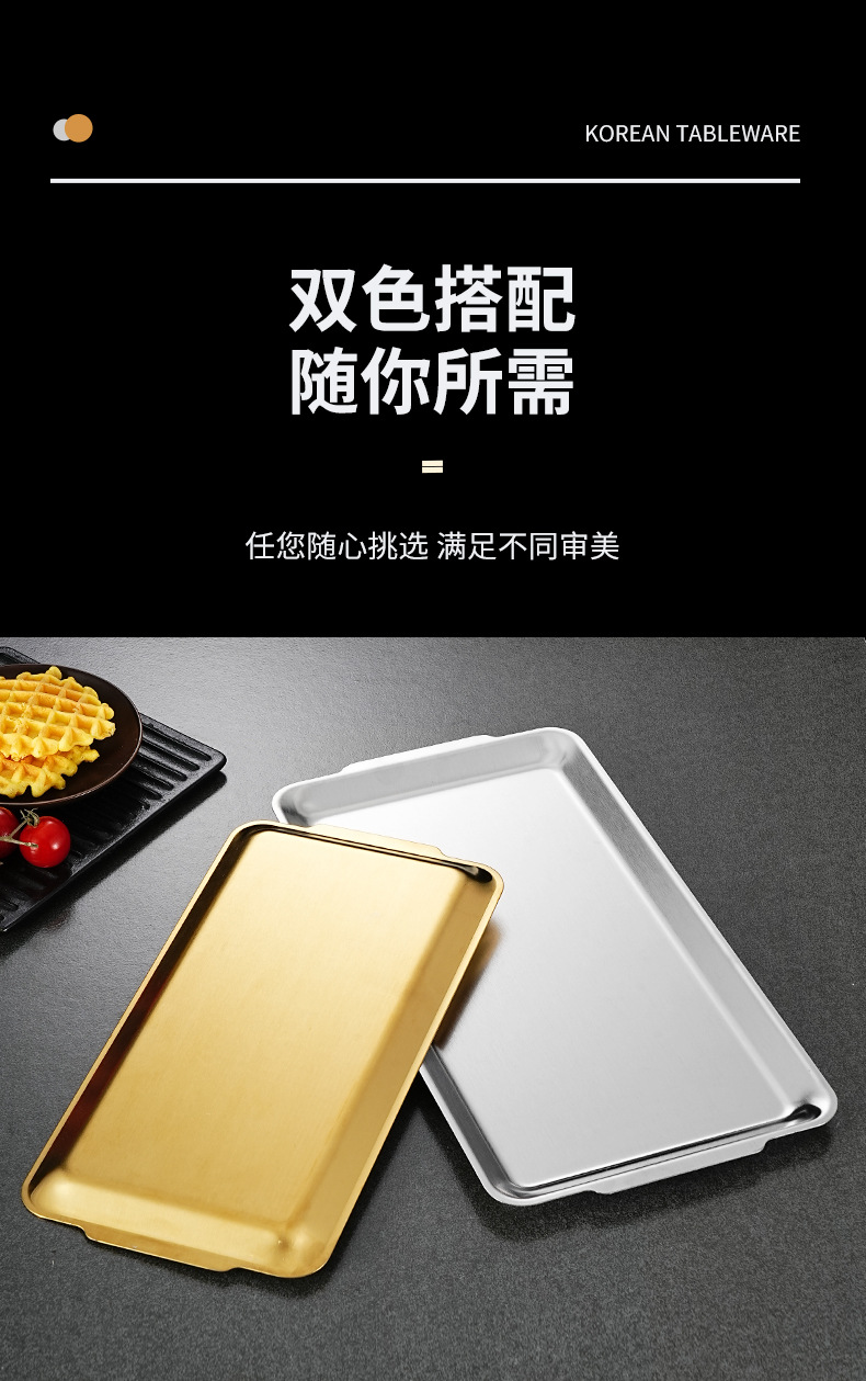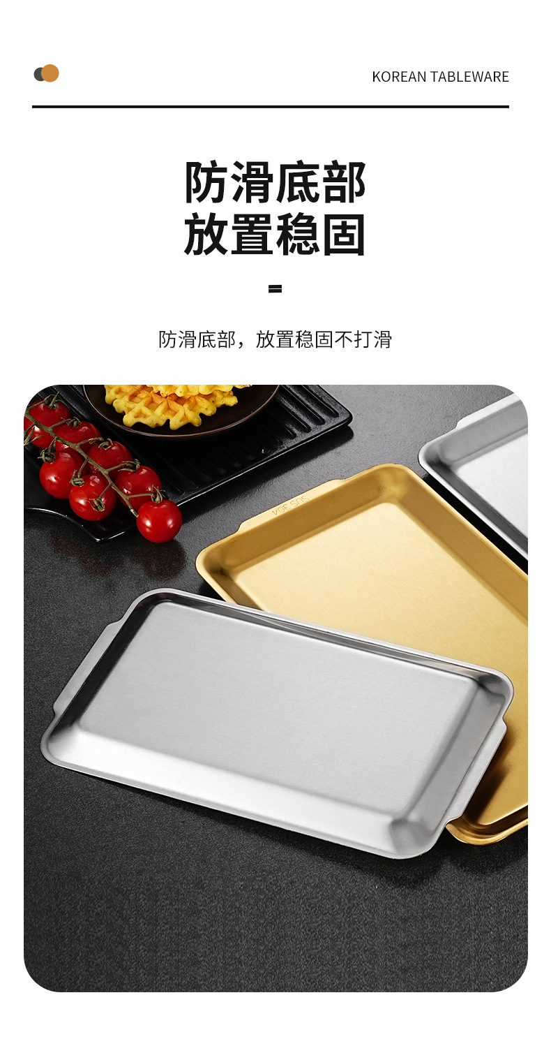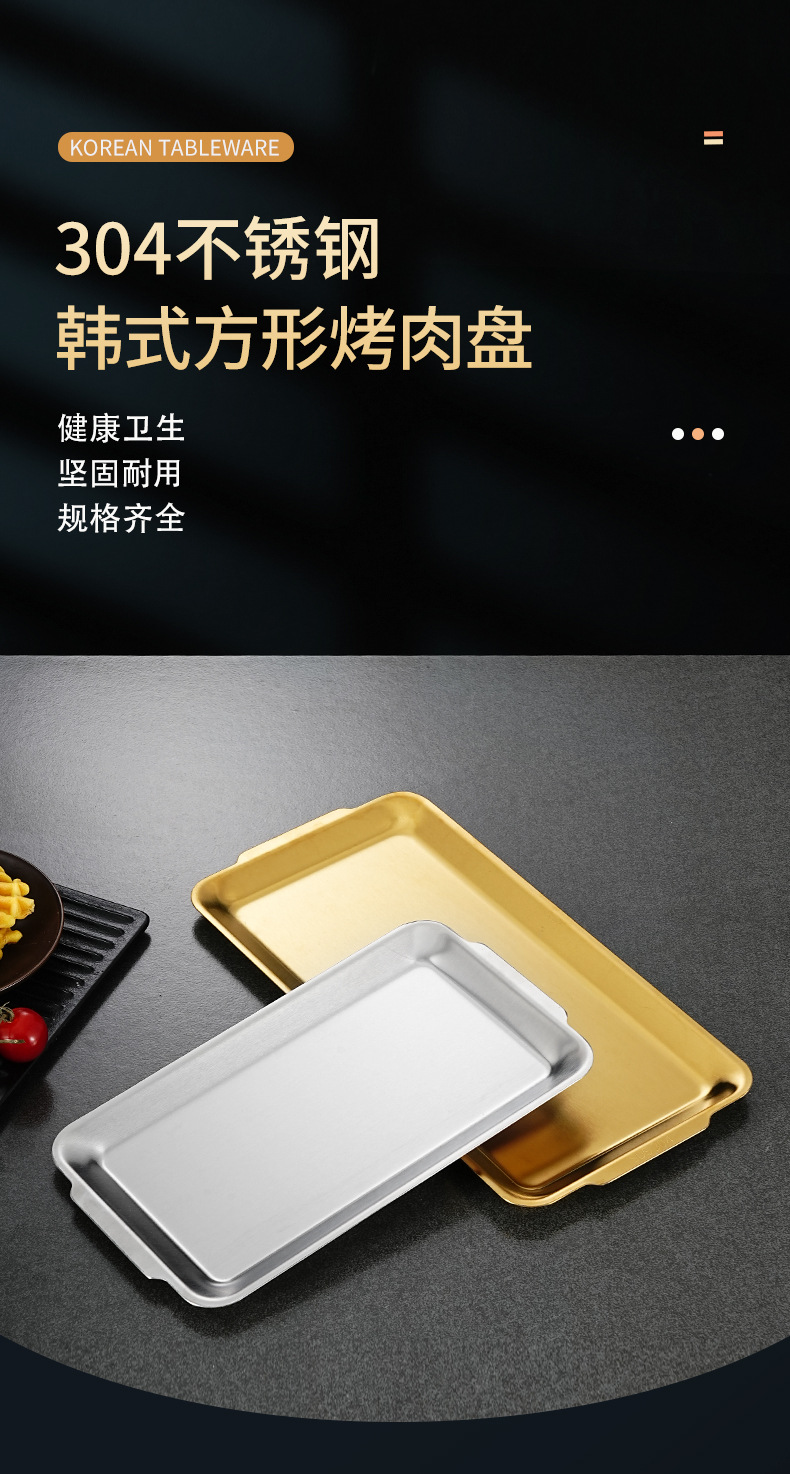 공장 직접 판매 한국식 바베큐 접시 스테인레스 스틸 사각형 접시 바베큐 플랫 트레이 골든 인 스타일 접시 고급스러운스토어 가기