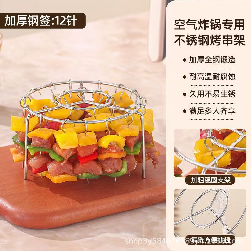 에어 프라이어 바베큐 그릴 스테인레스 스틸 가정용 케밥 랙 다기능 그릴 더블 레이어 에어 프라이어 랙