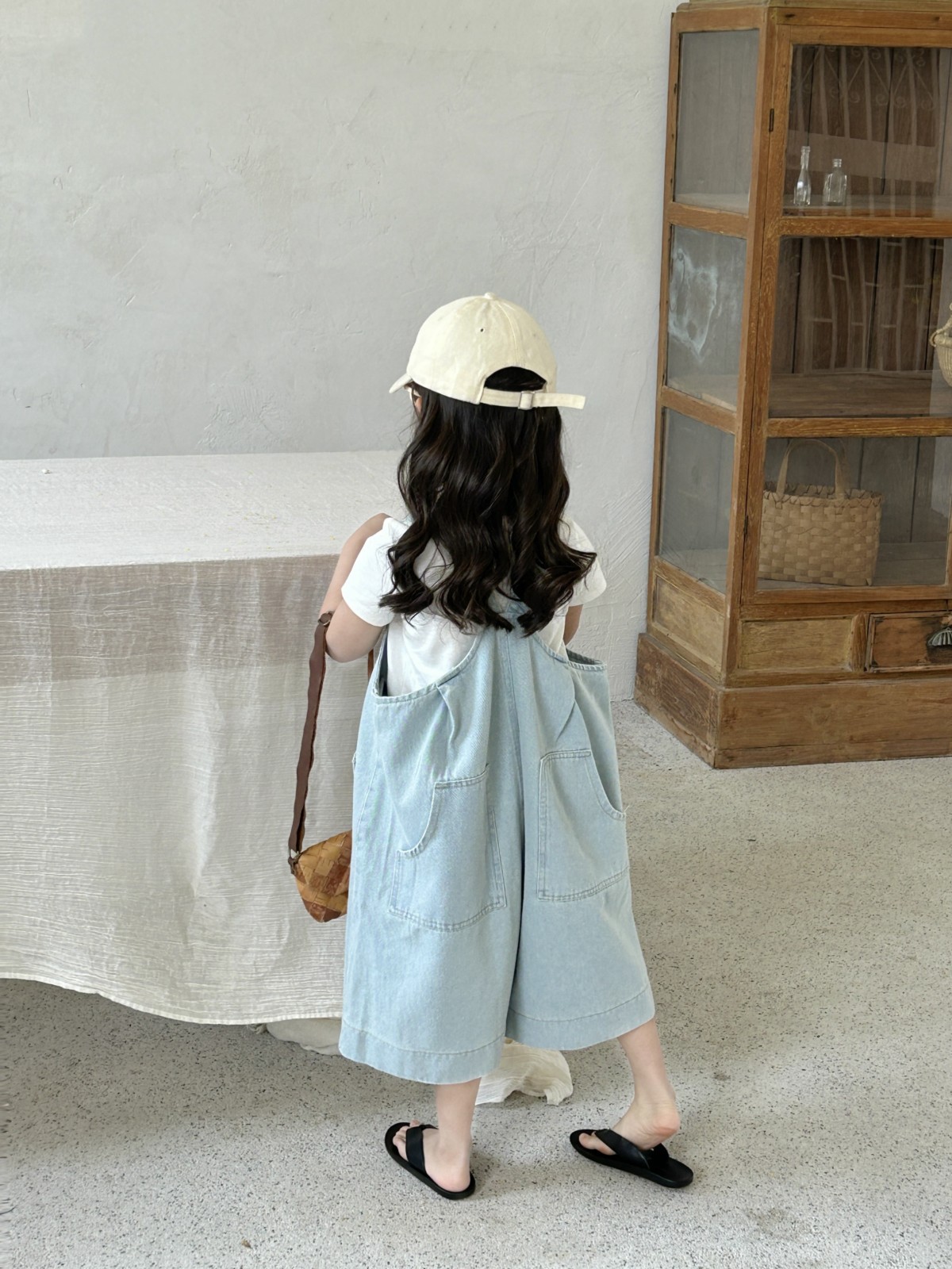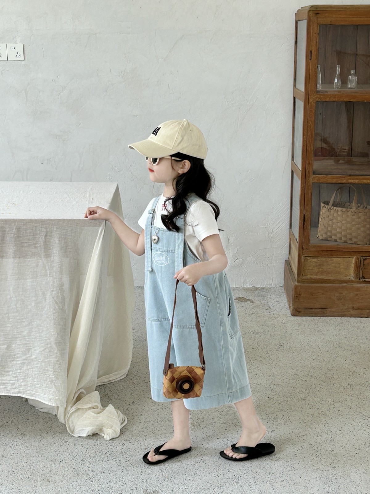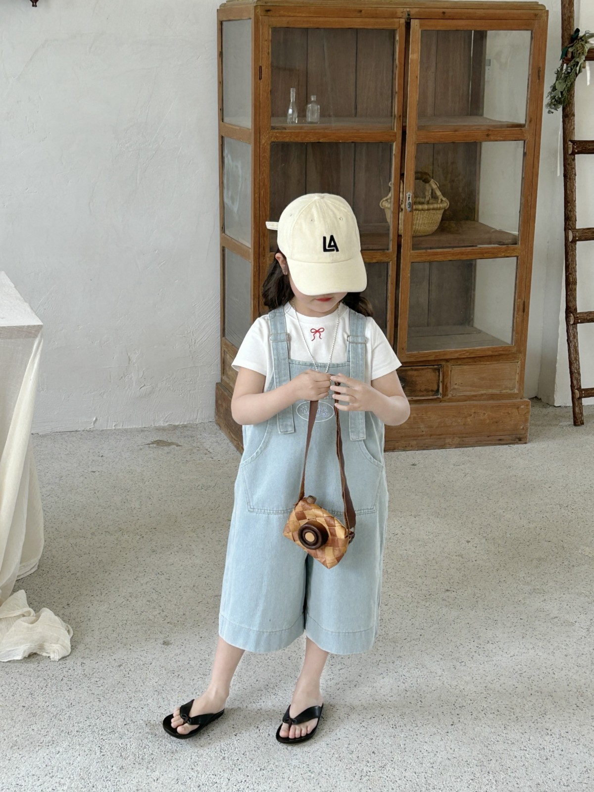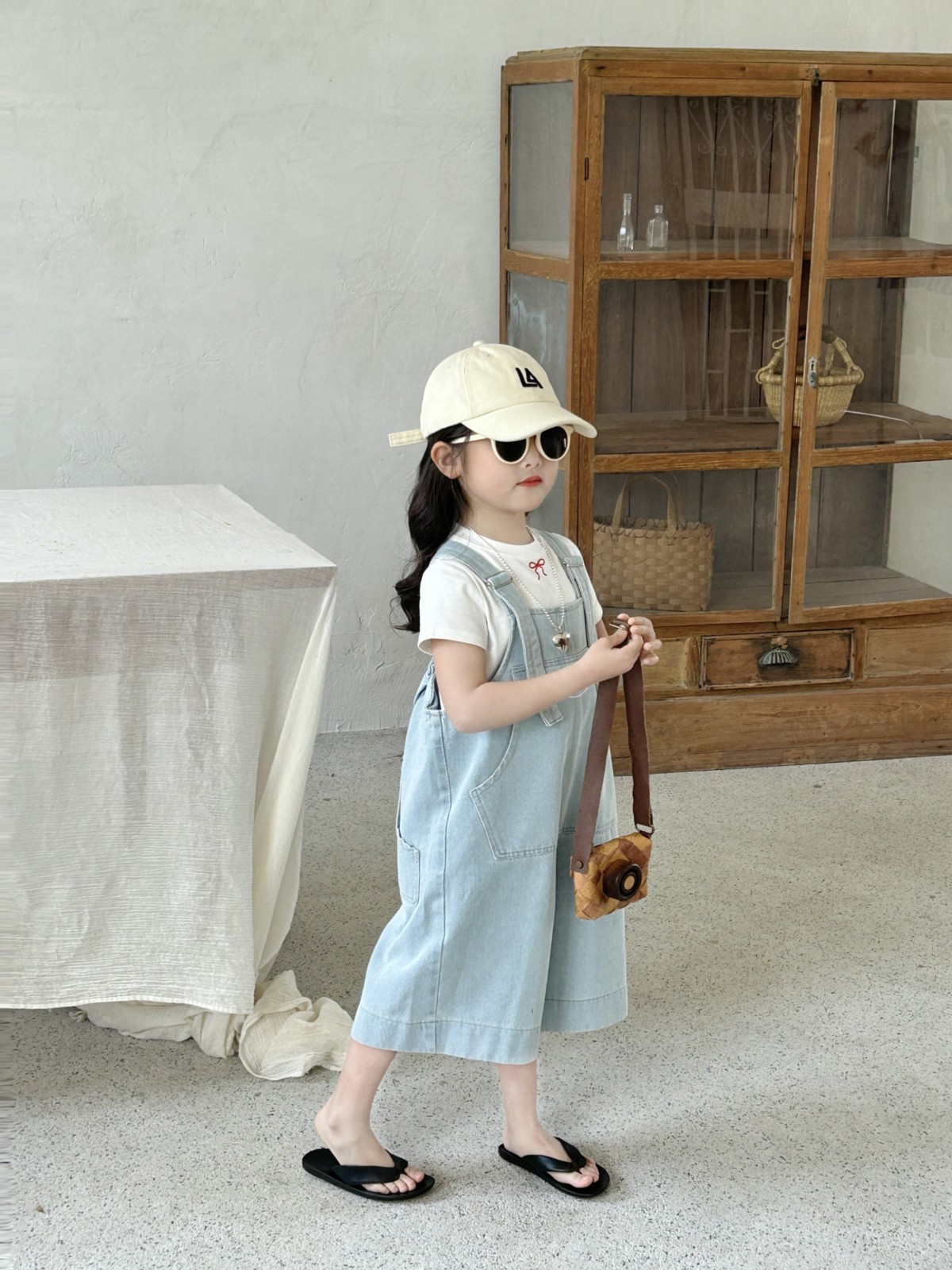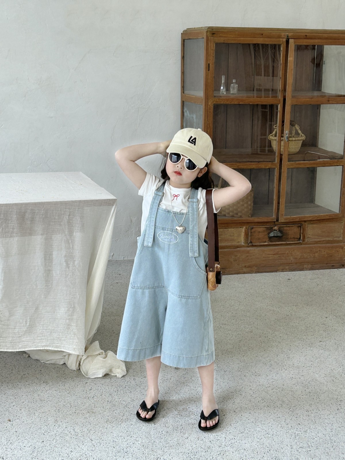 한국 스타일 아동복 2025 여름 새 어린이 청바지 남녀 남녀 아기 카프리 바지 올매치 스트랩 바지스토어 가기