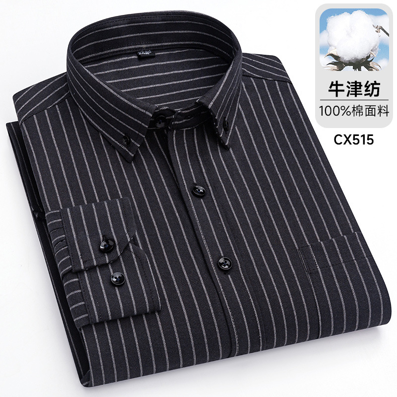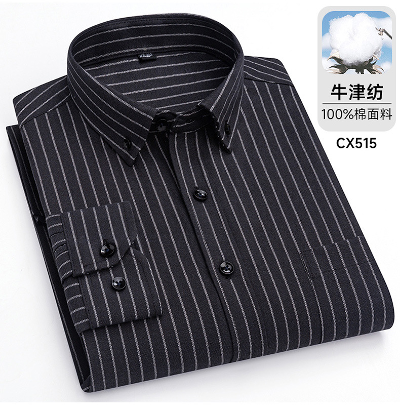 2025 새로운 국경 남성 셔츠 줄무늬 캐주얼 버튼 칼라 카디건 옥스포드 긴 소매 플러스 사이즈 셔츠
