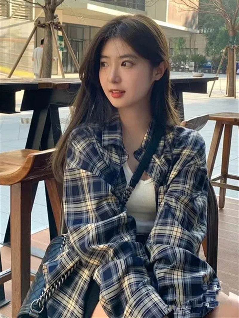 한국식 레트로 긴팔 무늬 셔츠 여성 2025 년 여름 새 디자인 센스 루즈 셔츠 얇은 탑 코트