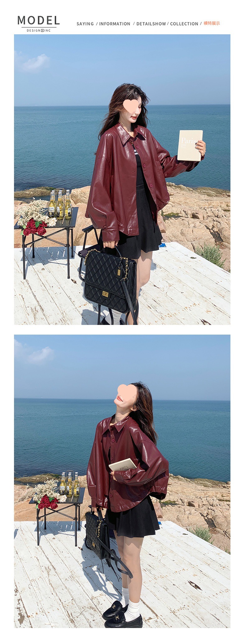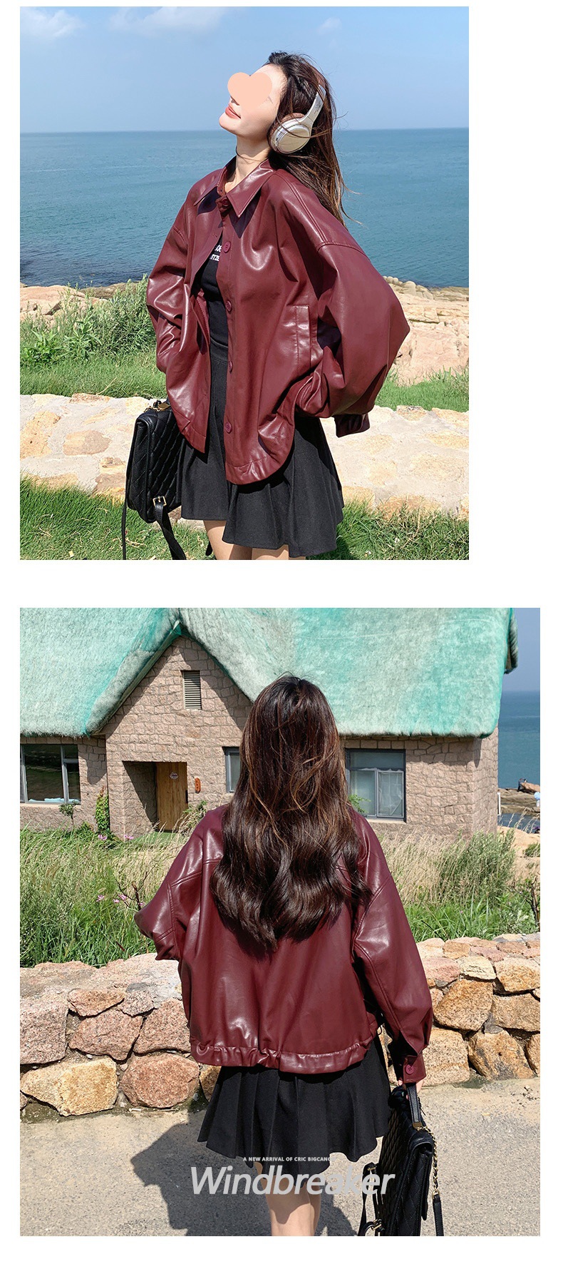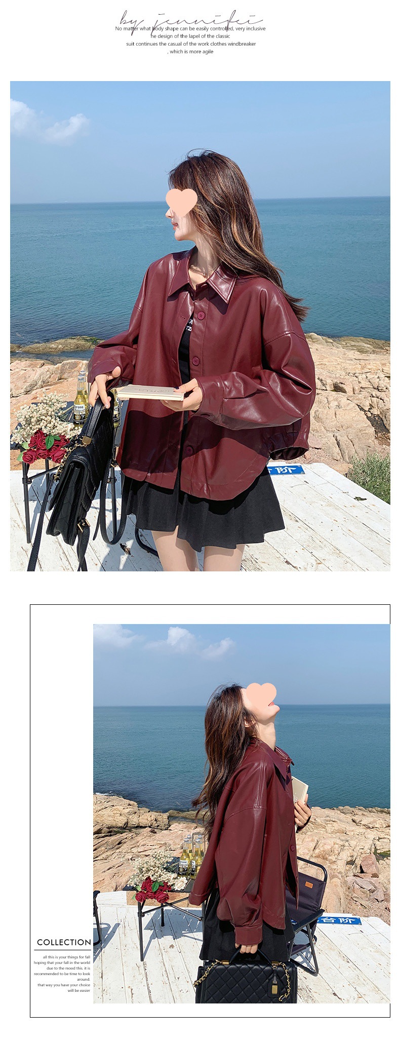 레드 가죽 자켓 여성 짧은 봄 새로운 스타일 작은 느슨한 캐주얼 복고풍 가죽 자켓 탑스토어 가기