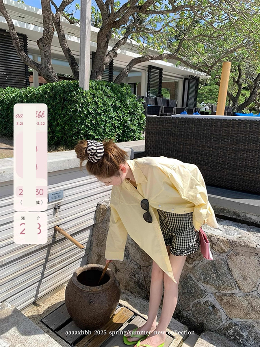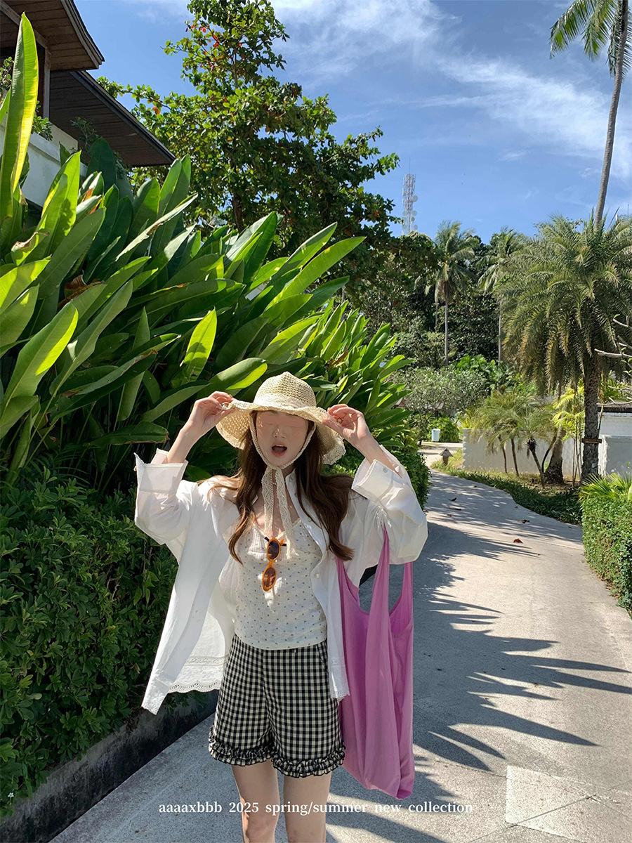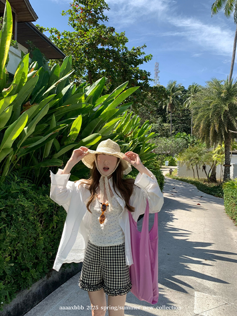 Aaaaxbbb 해변 반복 2 색 레이스 셔츠 여성용 최고 고정 염료 대형 소매 자외선 차단제 재킷