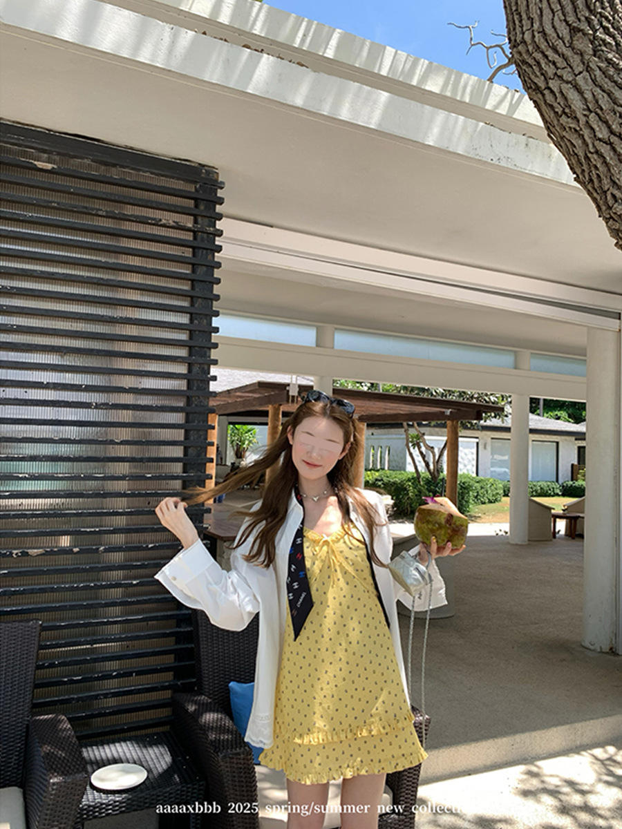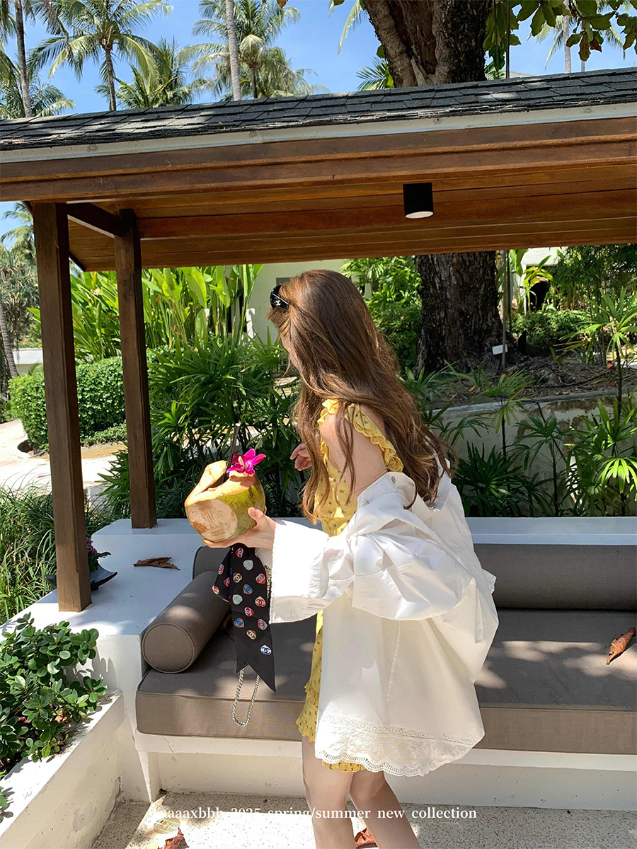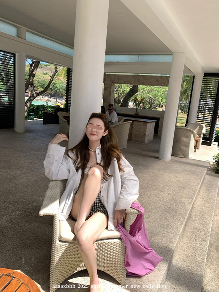 Aaaaxbbb 해변 반복 2 색 레이스 셔츠 여성용 최고 고정 염료 대형 소매 자외선 차단제 재킷