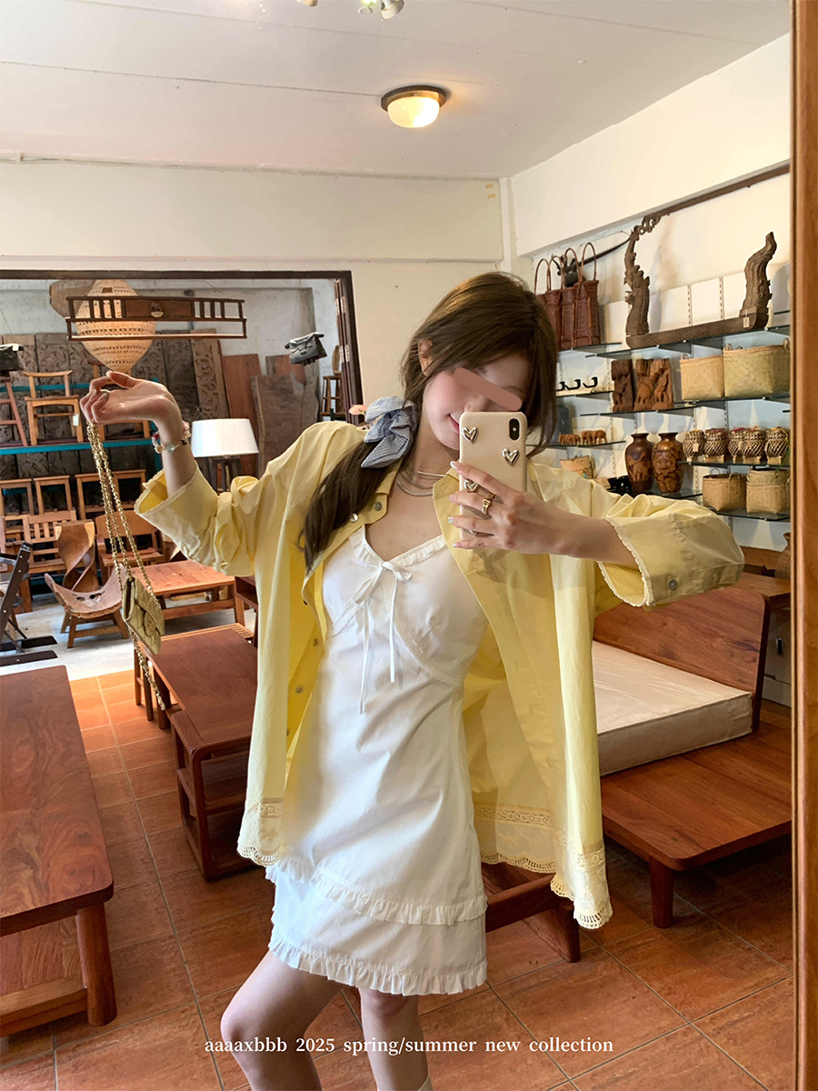 Aaaaxbbb 해변 반복 2 색 레이스 셔츠 여성용 최고 고정 염료 대형 소매 자외선 차단제 재킷스토어 가기