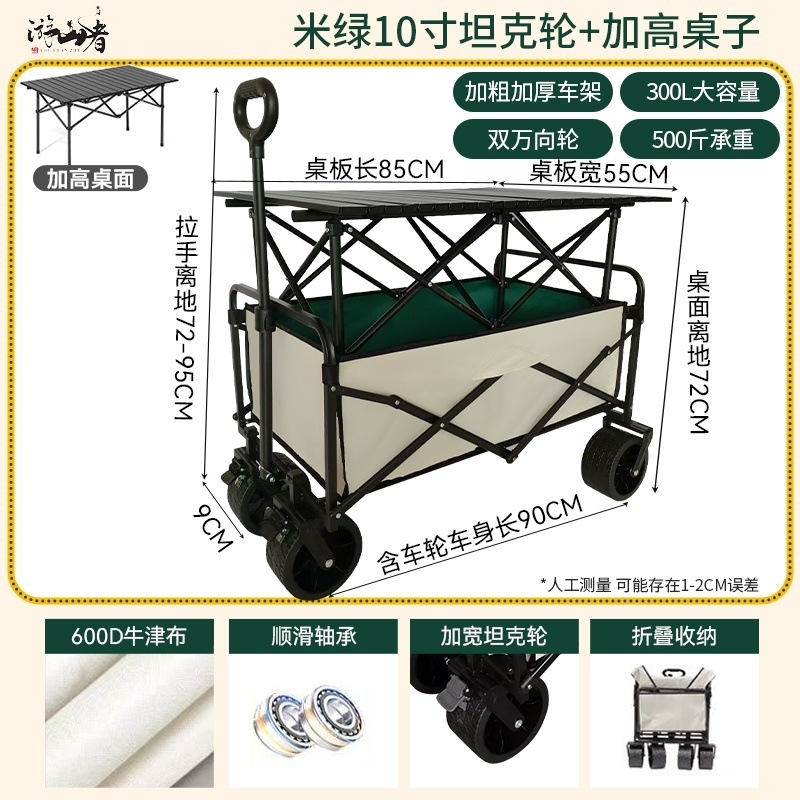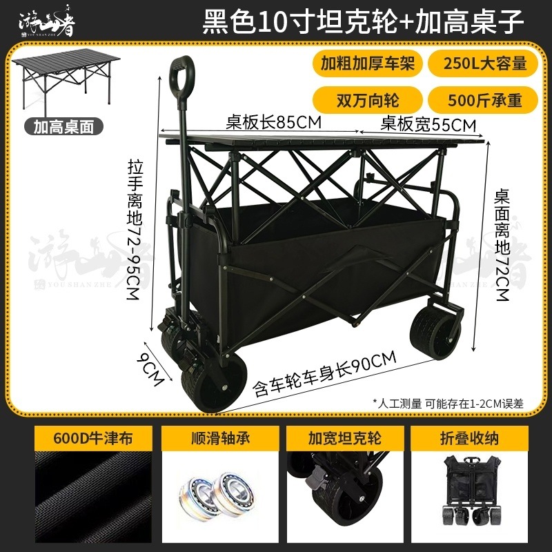 • 블랙 10inch 넓어진 탱크 휠丨더블 브레이크 + 견인 버킷丨접이식 테이블 보드 - 새로운 업그레이드丨더블 레이어 패브릭丨두꺼운 강철 프레임