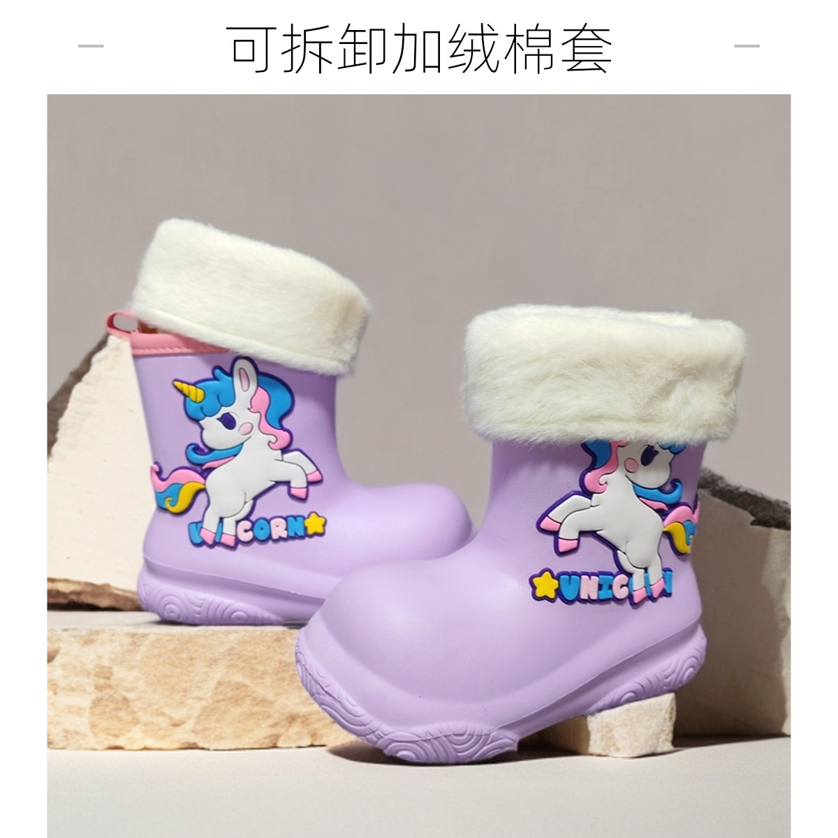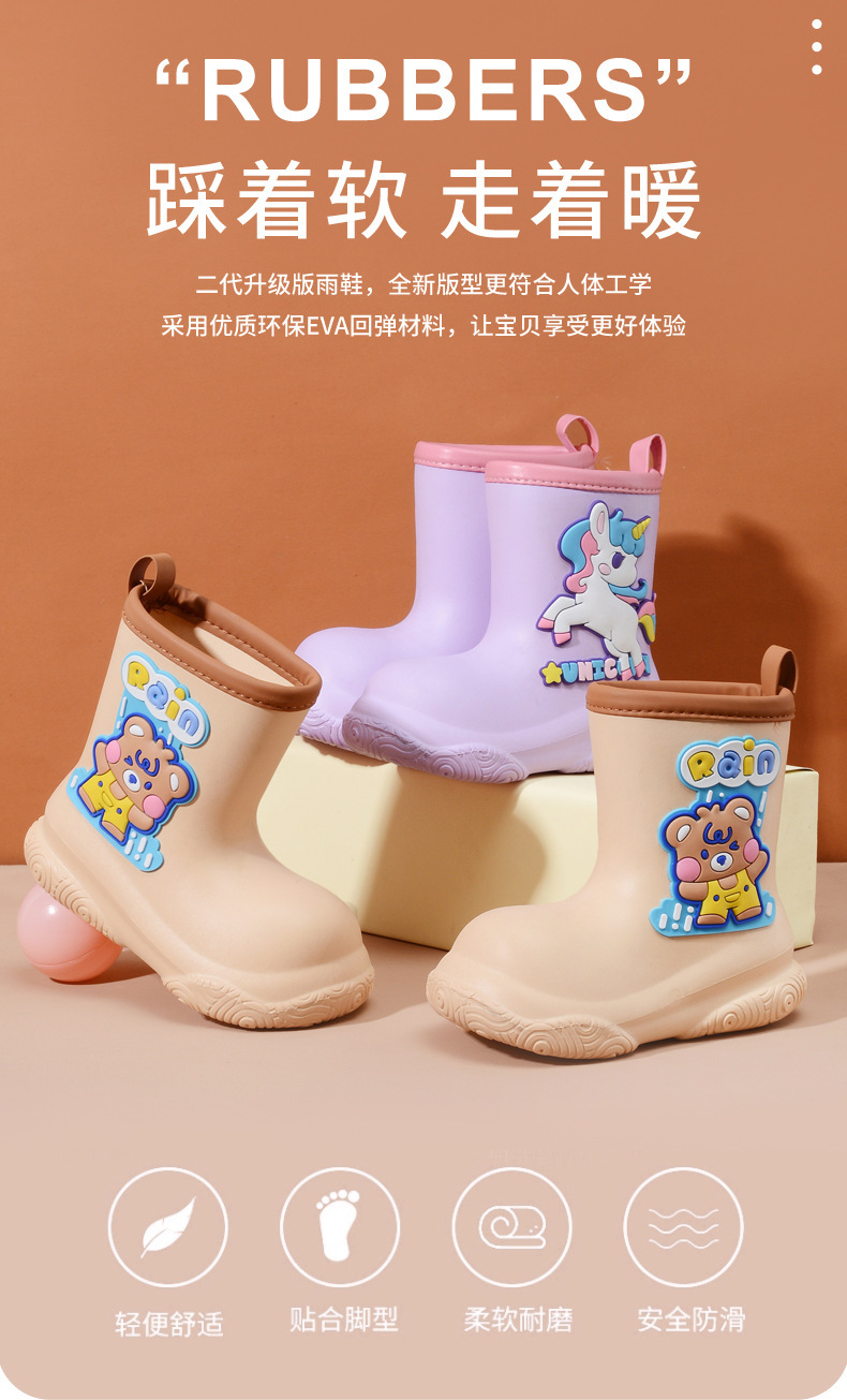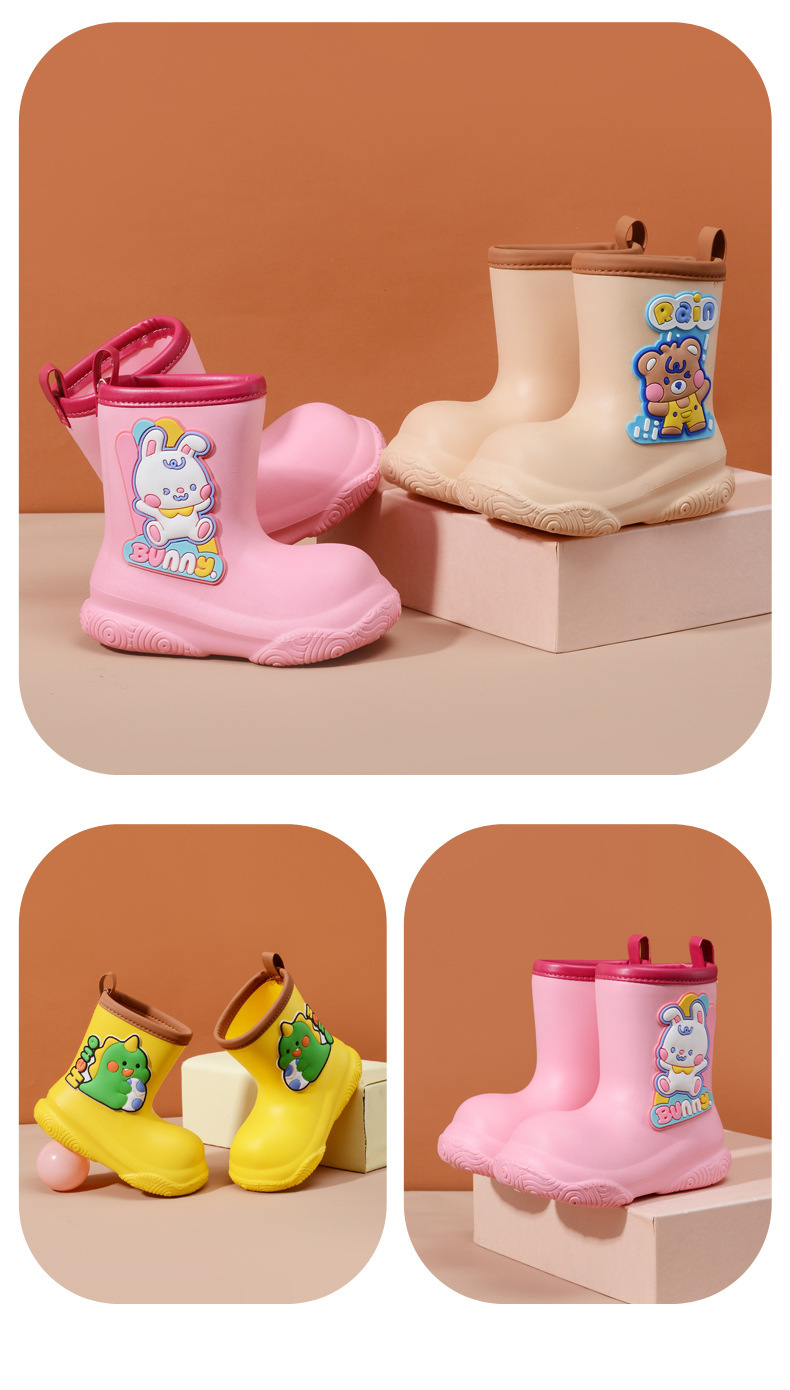 2-6 세 소녀를위한 어린이 장화 만화 EVA 겉옷 방수 신발 미끄럼 방지 부드러운 바닥 짧은 소년 장화