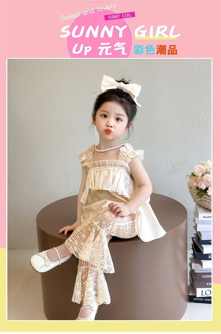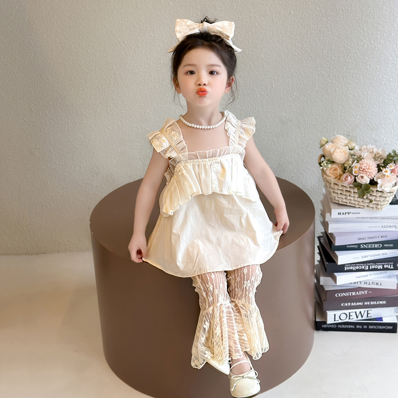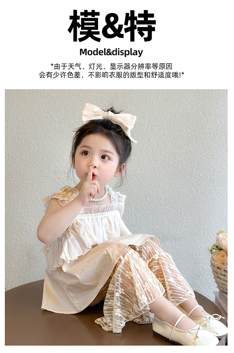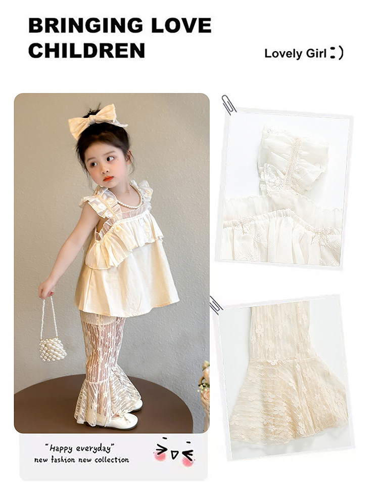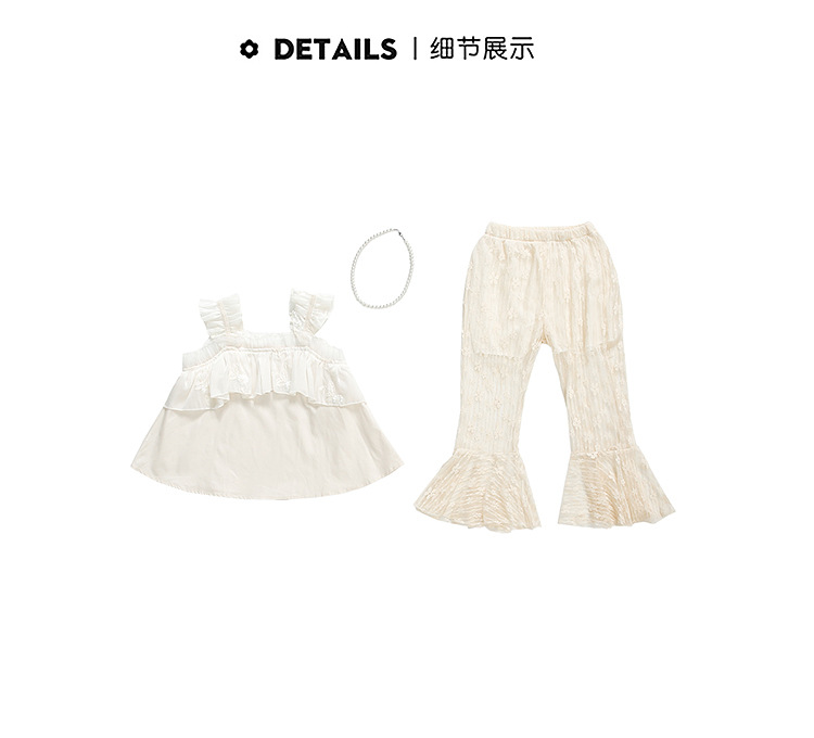 소녀 진주 목걸이 세트 2025 여름 새로운 패션 소녀 세련된 중소형 어린이를위한 투피스 세트