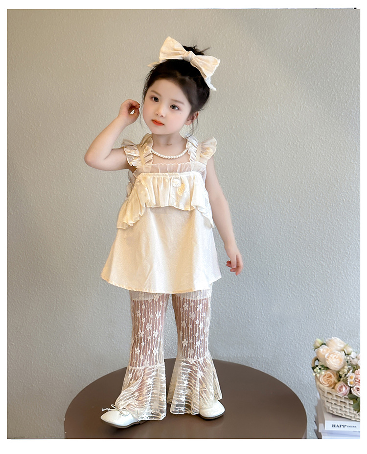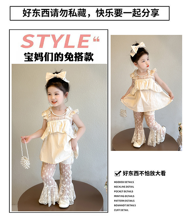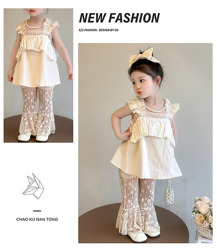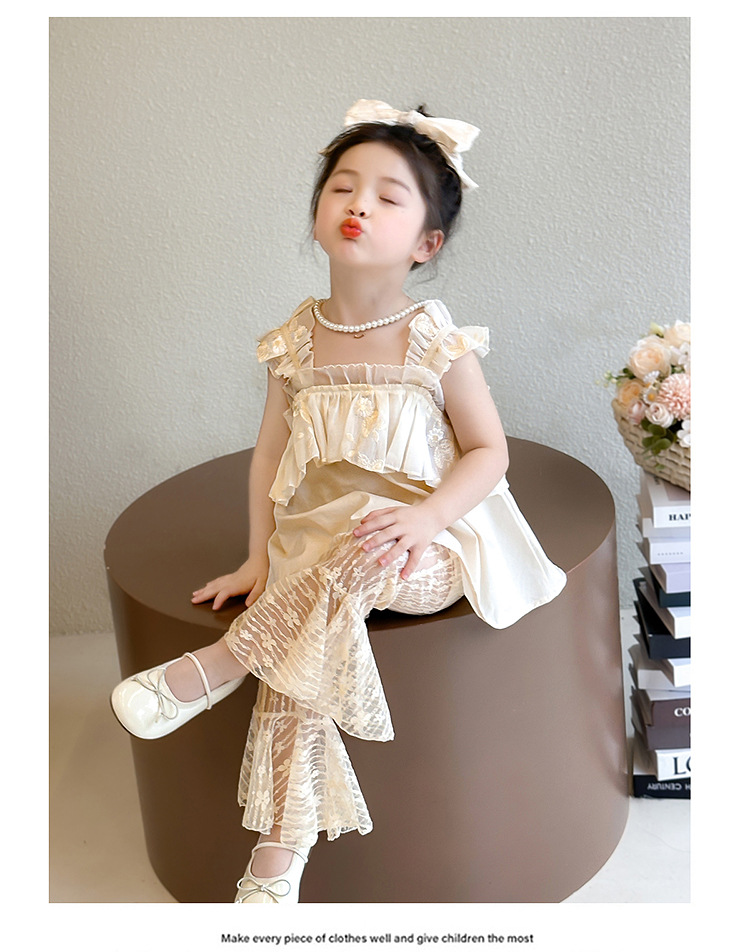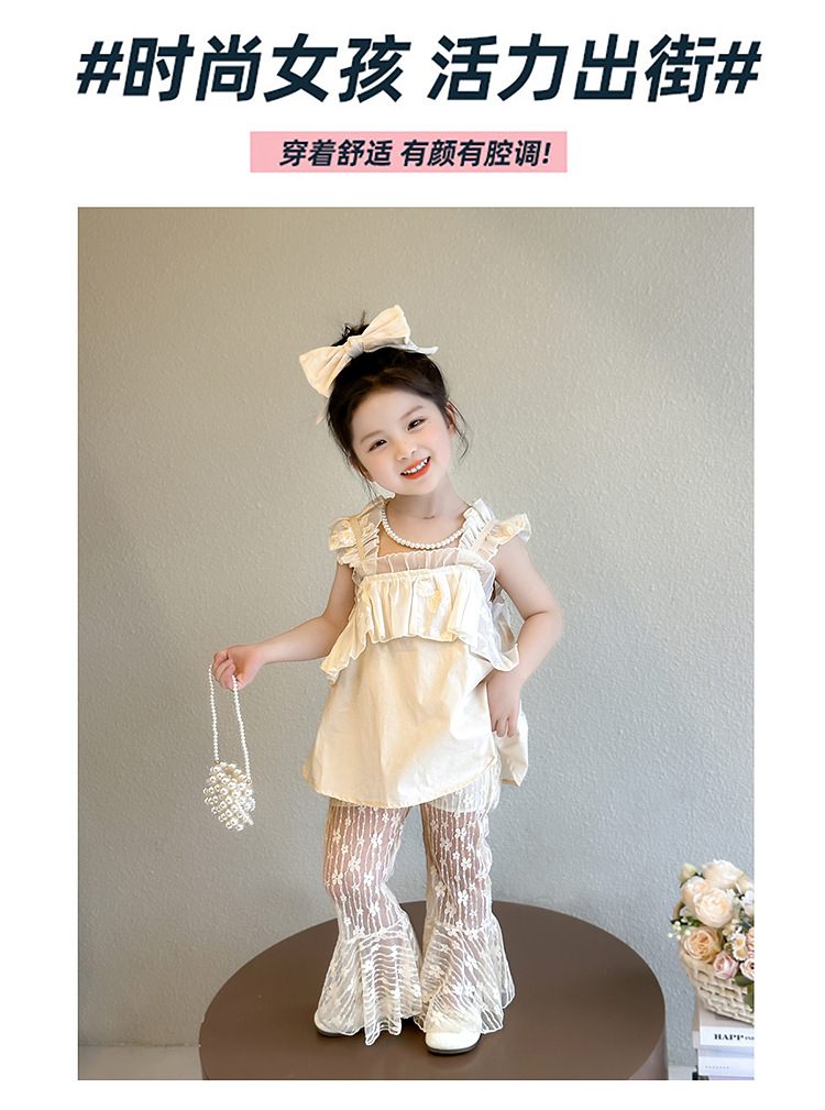 소녀 진주 목걸이 세트 2025 여름 새로운 패션 소녀 세련된 중소형 어린이를위한 투피스 세트