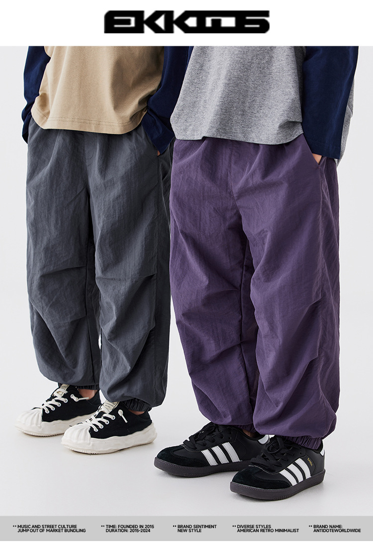 EK 어린이 착용 야외 산 캠핑 소년 느슨한 주름 빠른 건조 스포츠 바지 크고 중간 크기의 어린이 시원한 모기 긴 바지