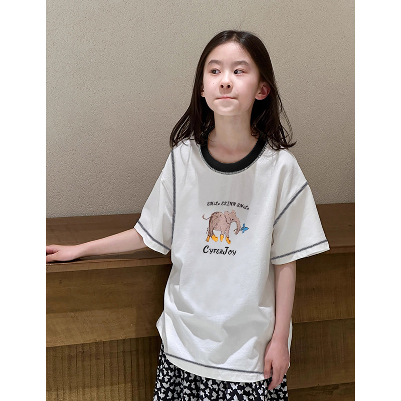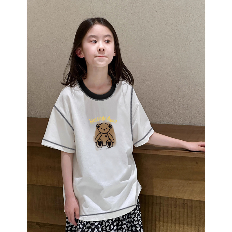 소녀 대비 반팔 티셔츠 여름 새로운 CUHK 어린이와 학생 6-12 서양식 탑 걸스 여름 티셔츠