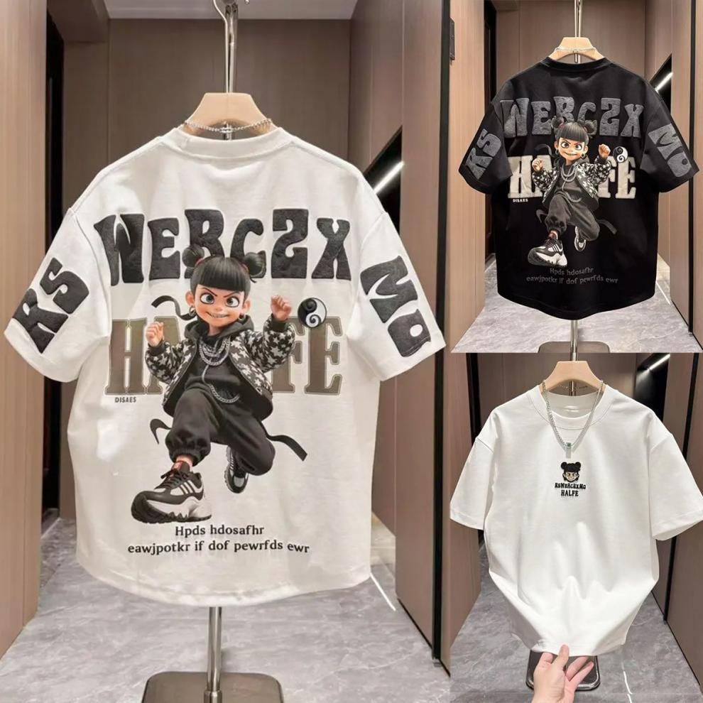 Nezha 2 소년 여름 반팔 티셔츠 2025 새로운 어린이 티셔츠 탑 소년 여름 만화 올 매치 반소매스토어 가기