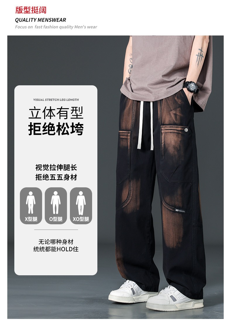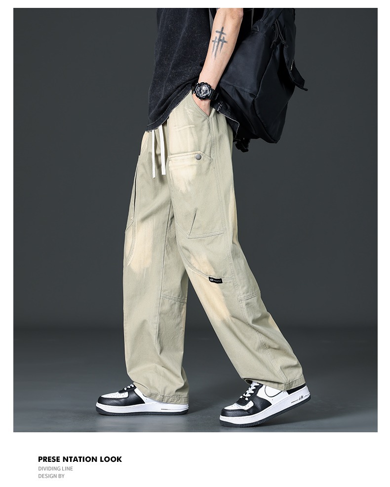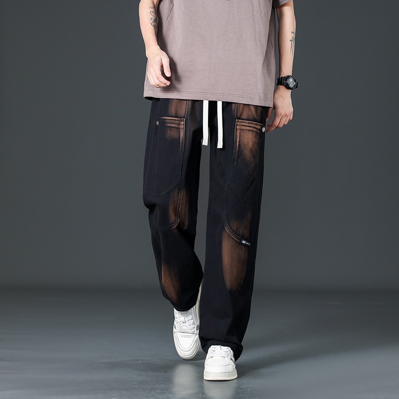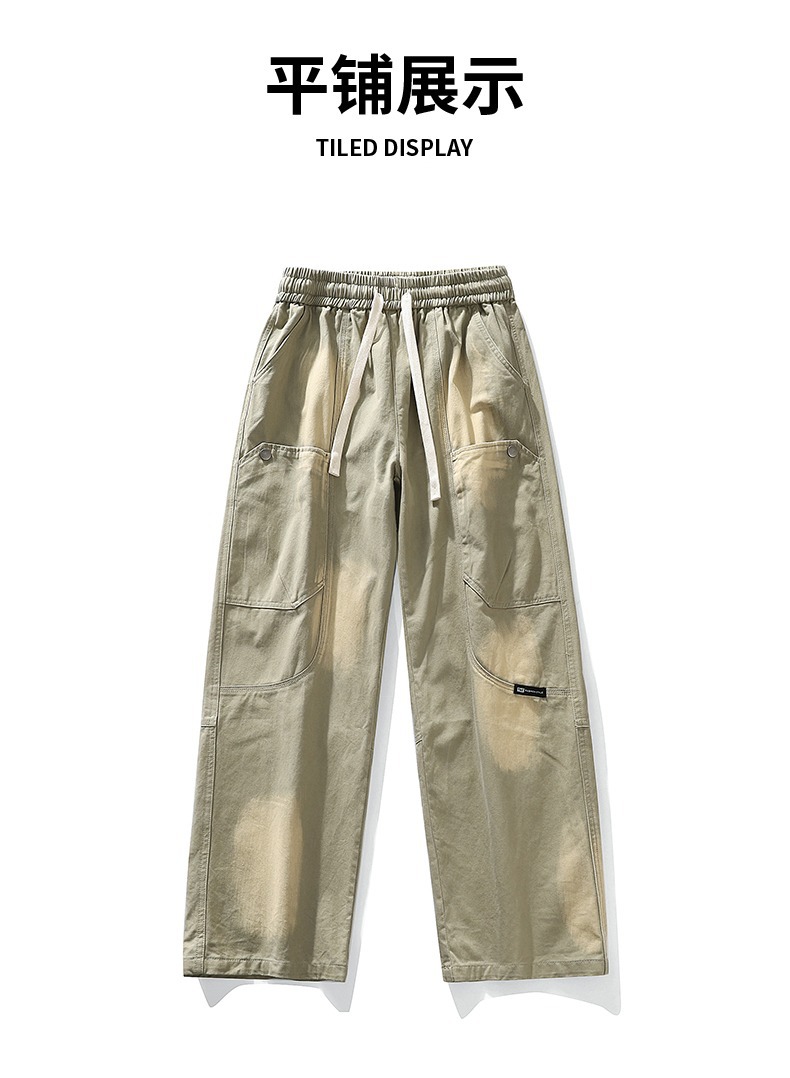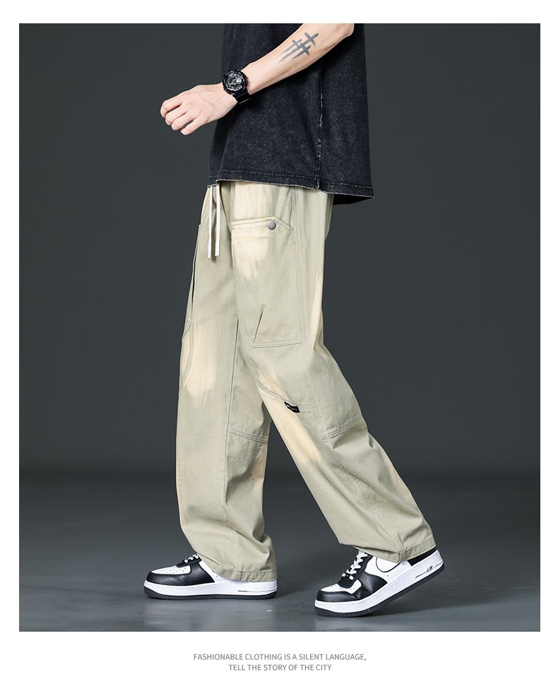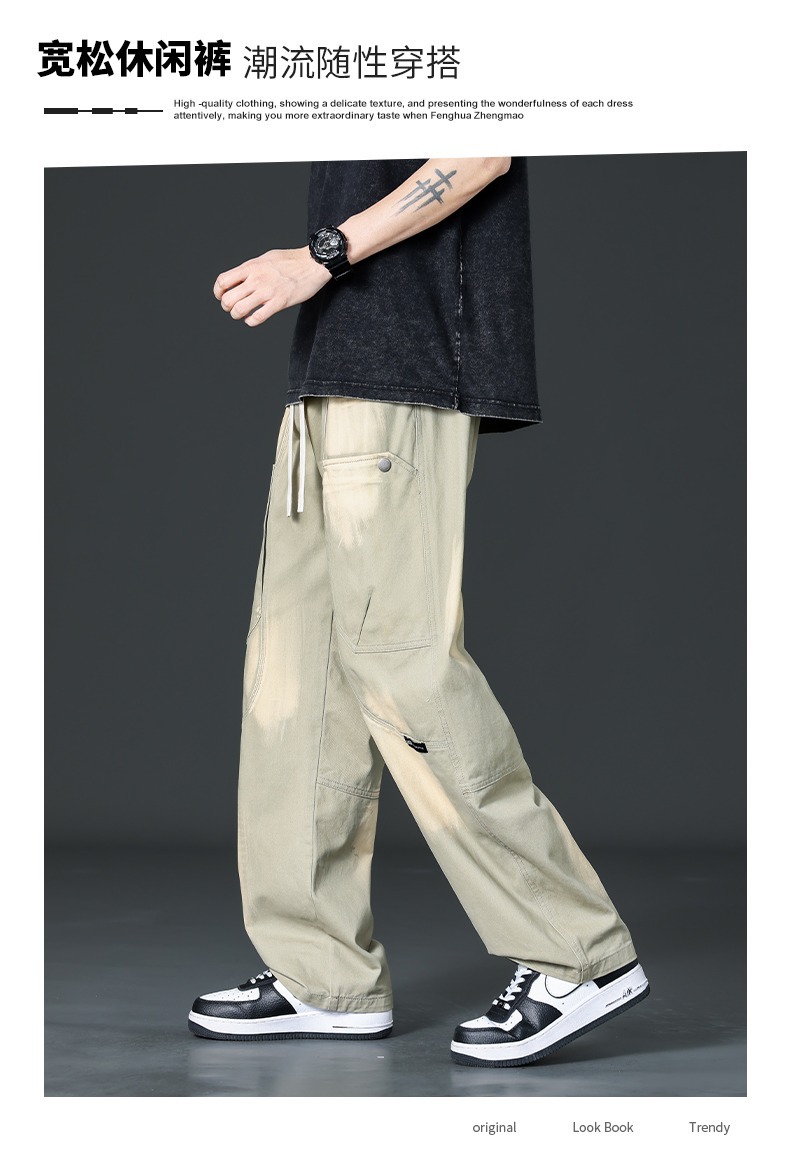 아메리칸 스타일 트렌디 브랜드 퓨어 코튼 플러스 사이즈 오버롤 남성용 루즈 스트레이트-레그 팬츠 플러스 레이업 캐주얼 심플 와이드 레그 팬츠스토어 가기