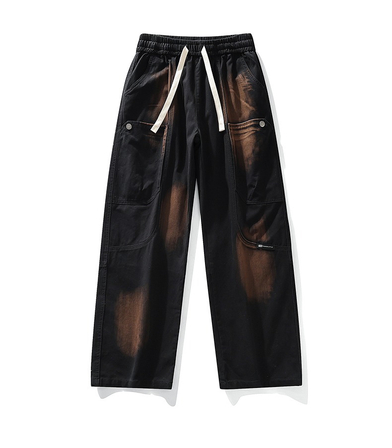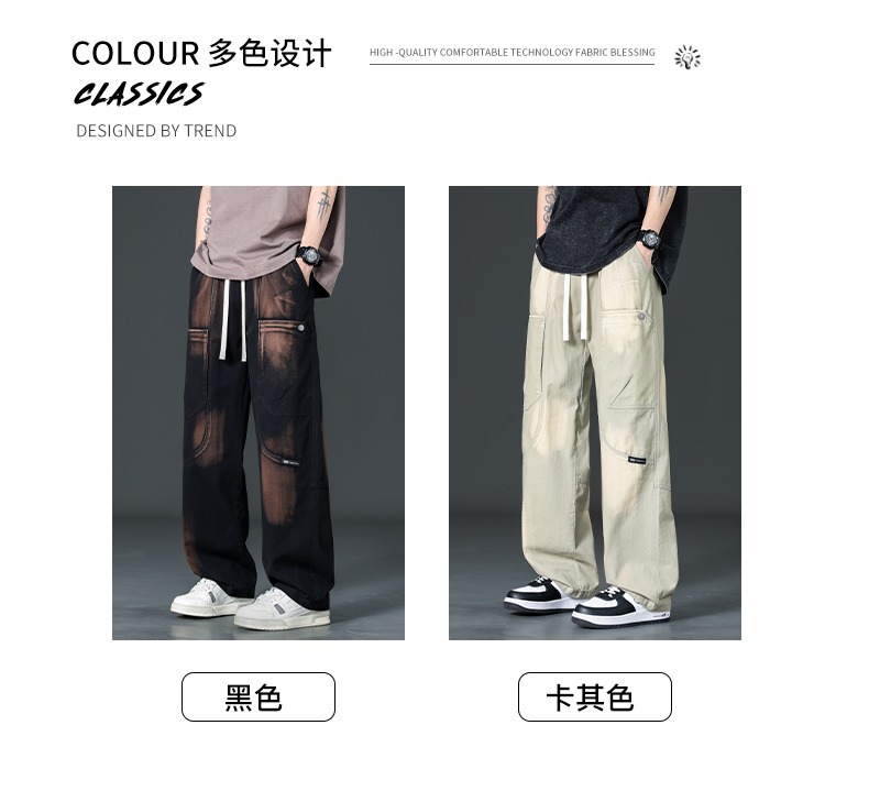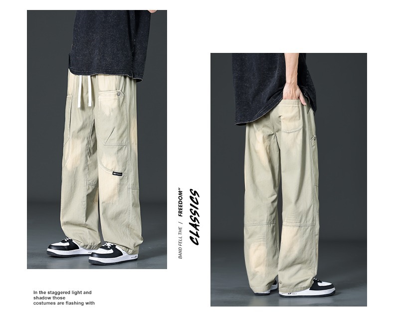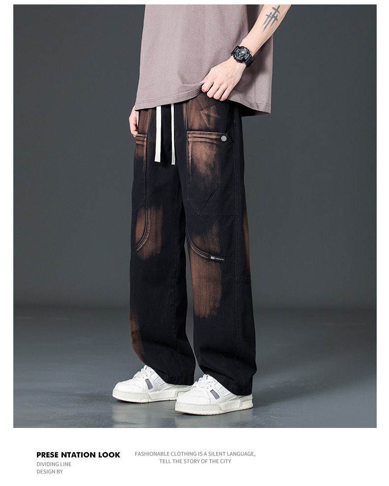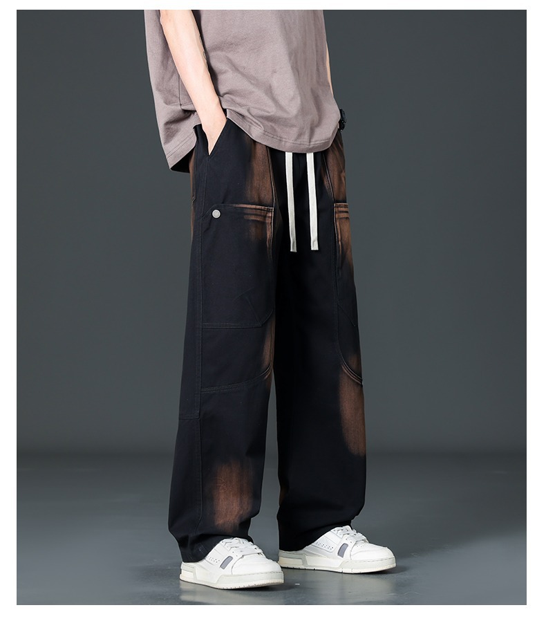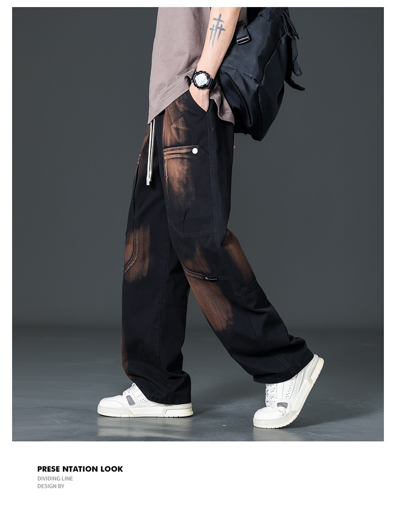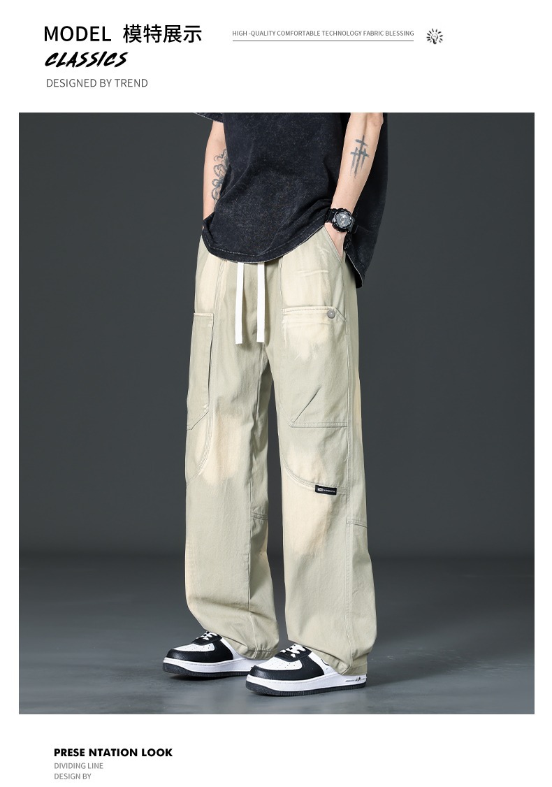 아메리칸 스타일 트렌디 브랜드 퓨어 코튼 플러스 사이즈 오버롤 남성용 루즈 스트레이트-레그 팬츠 플러스 레이업 캐주얼 심플 와이드 레그 팬츠스토어 가기