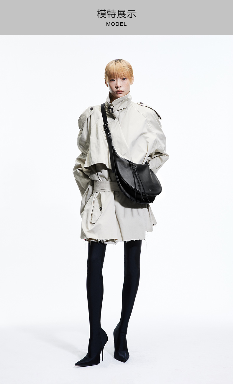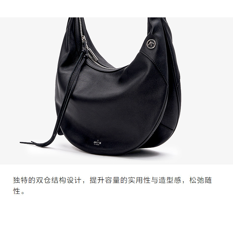 Amber同款GROTTO个乐25年新款小牛皮双月hobo单肩腋下软包